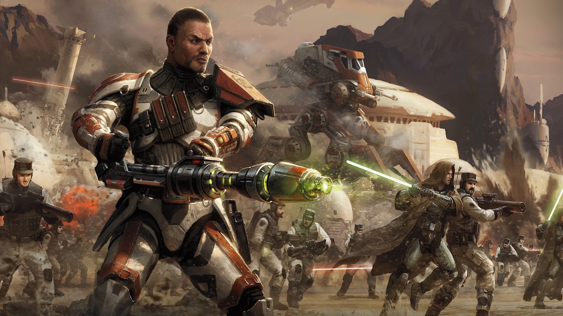 Guerra, batalla de fantasía en el fondo de las montañas