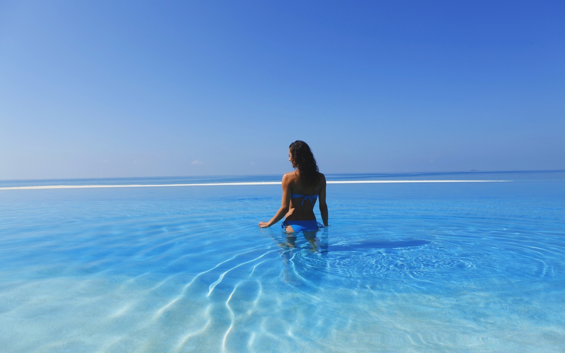 Mujer de vacaciones-bañarse en el océano Pacífico