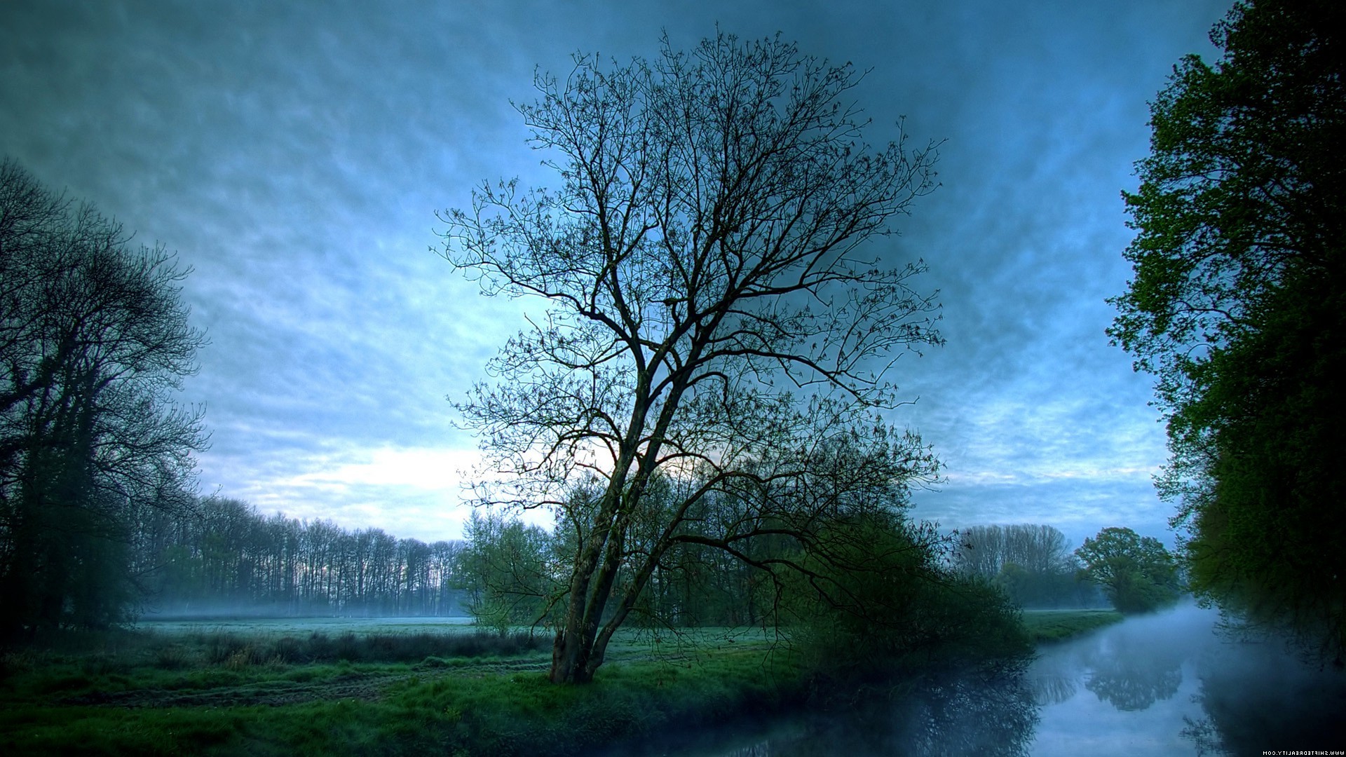 Paisaje natural con el reflejo de un árbol en la superficie del aguaPaisaje natural con el reflejo de un árbol en la superficie del agua