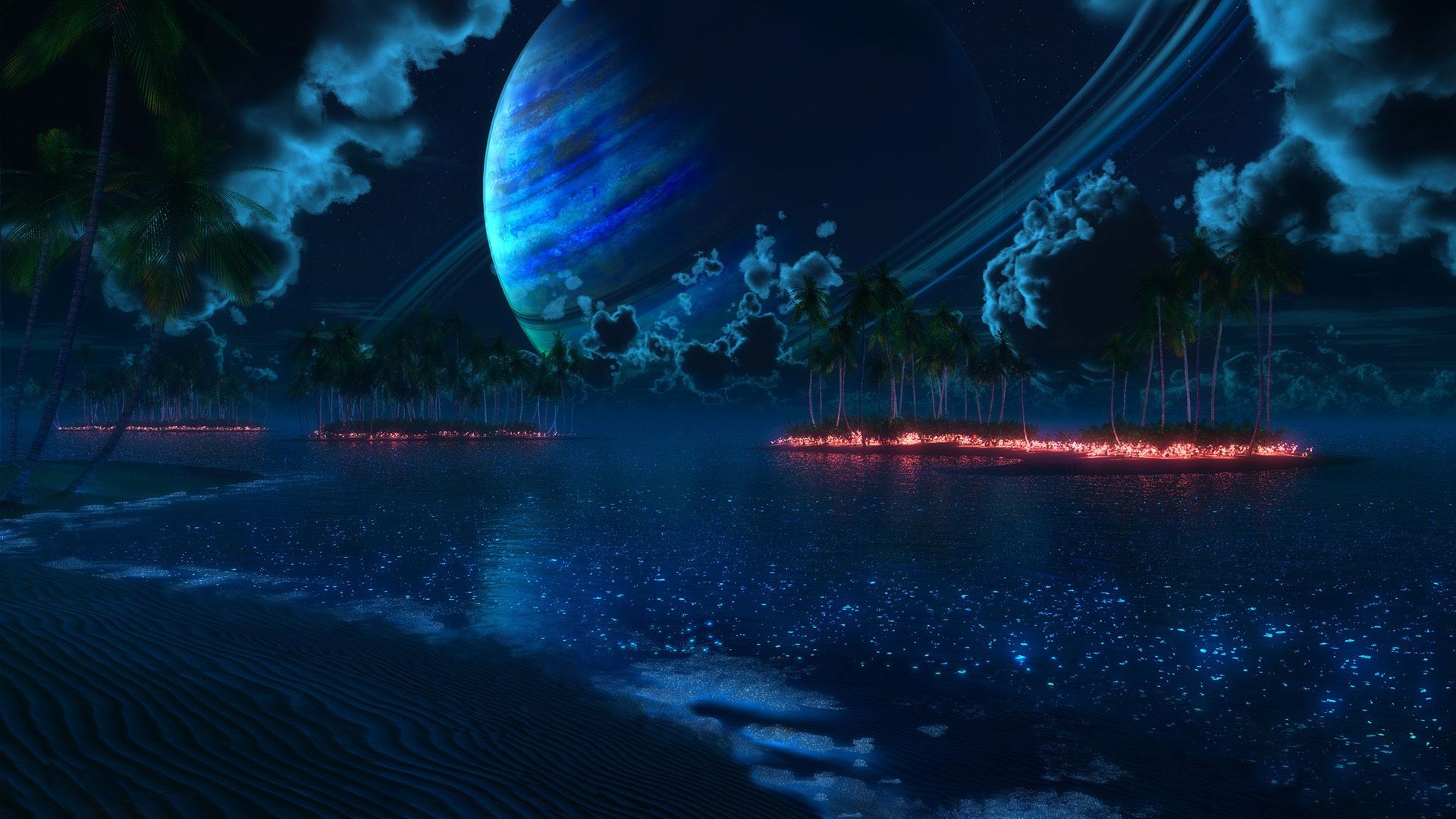 Un planeta con la salida del sol y la luna en el espacioUn planeta con la salida del sol y la Luna en el espacio