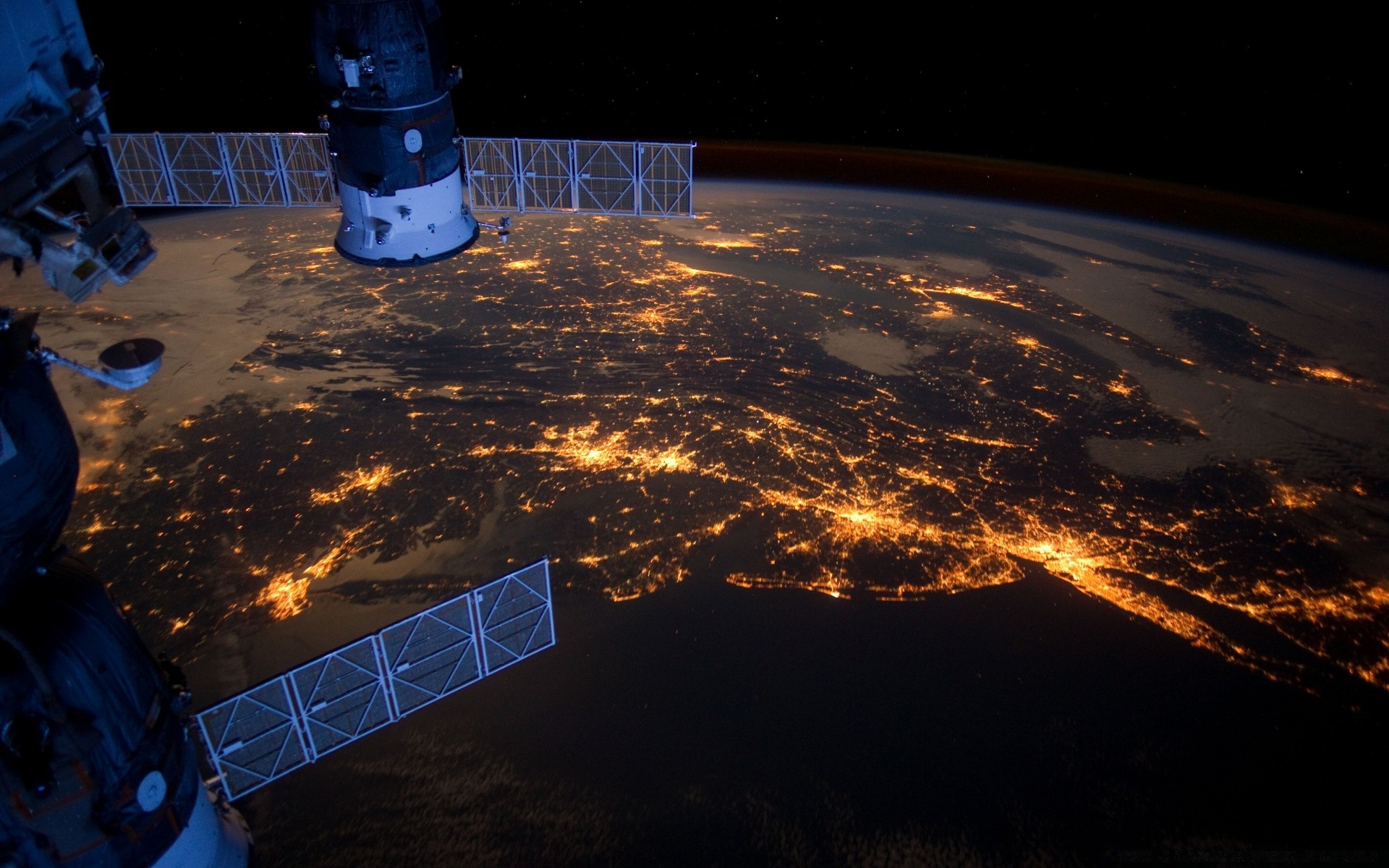 Satélite del planeta tierra en el espacio profundo