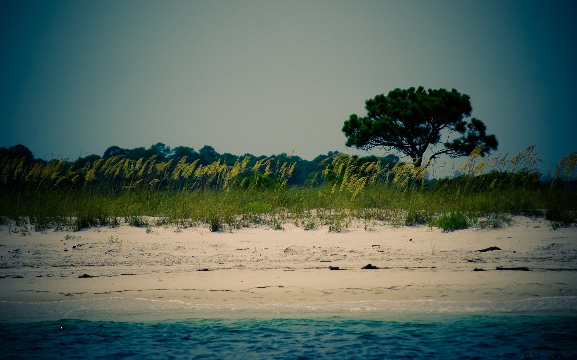 Playa de vacaciones con árboles tropicales en el fondo de la puesta de sol