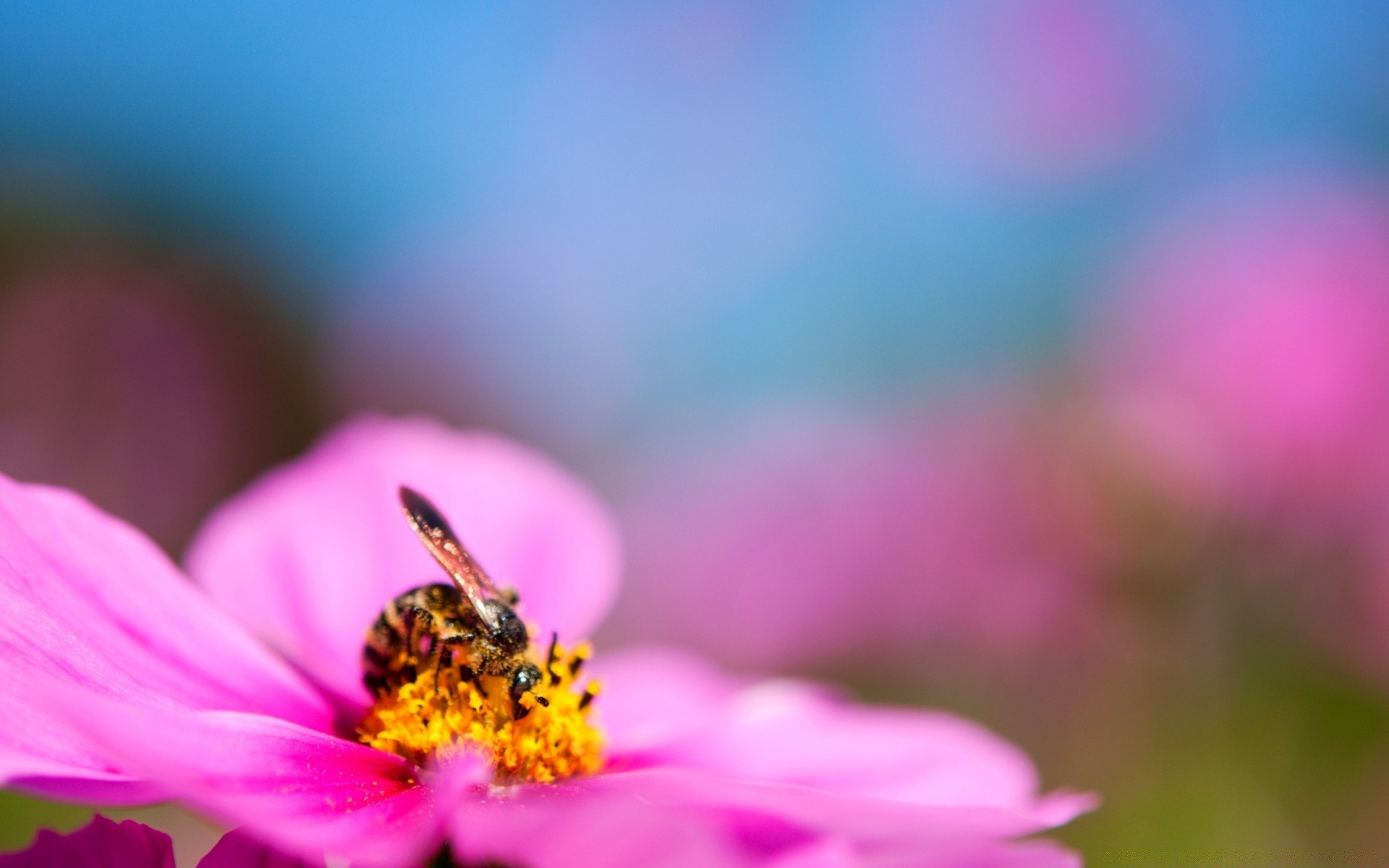 El insecto poliniza la flor. Flor rosa
