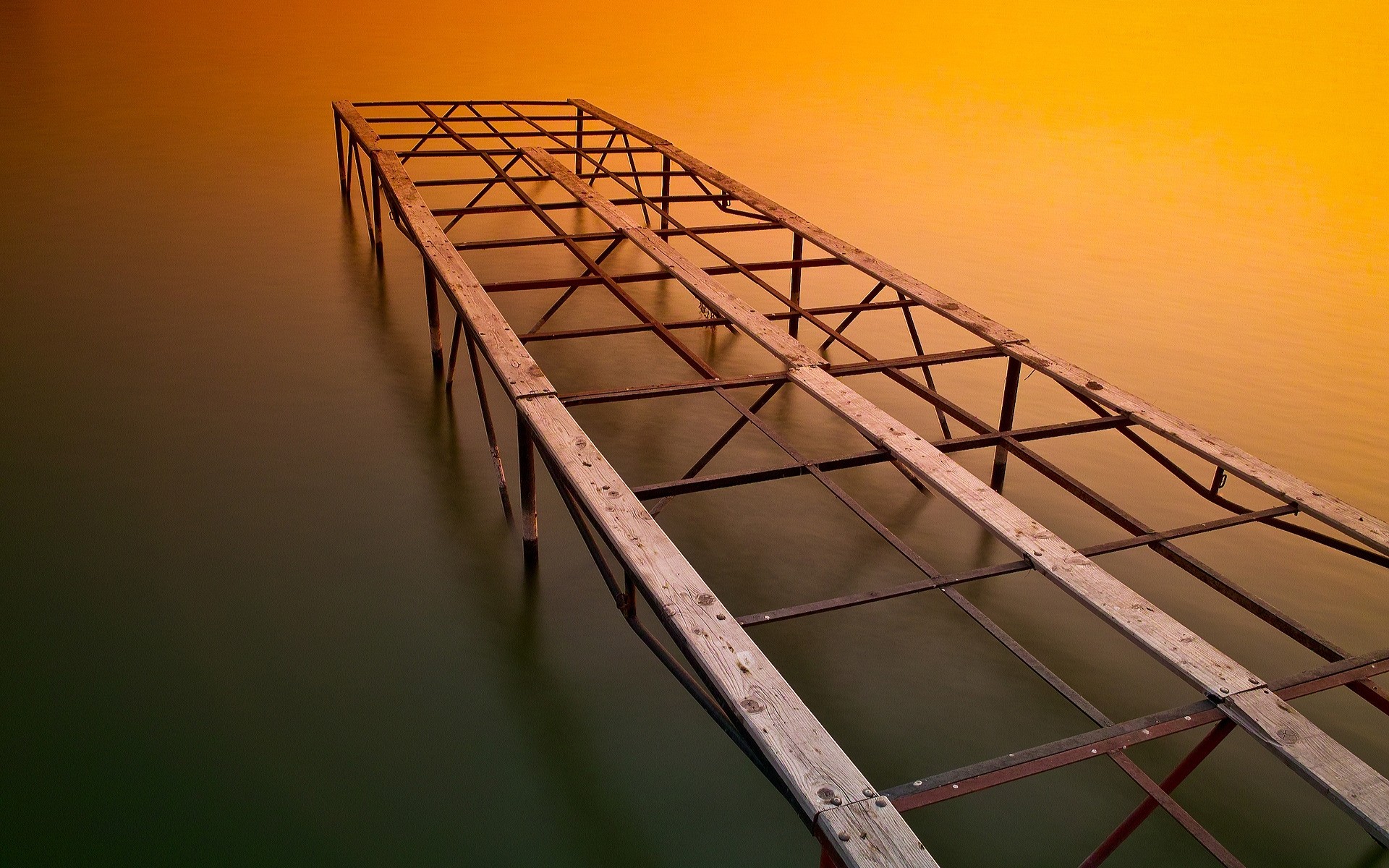 Vista nocturna del puente iluminado sobre el río con nubes en el cieloVista nocturna del puente iluminado sobre el río con nubes en el cielo