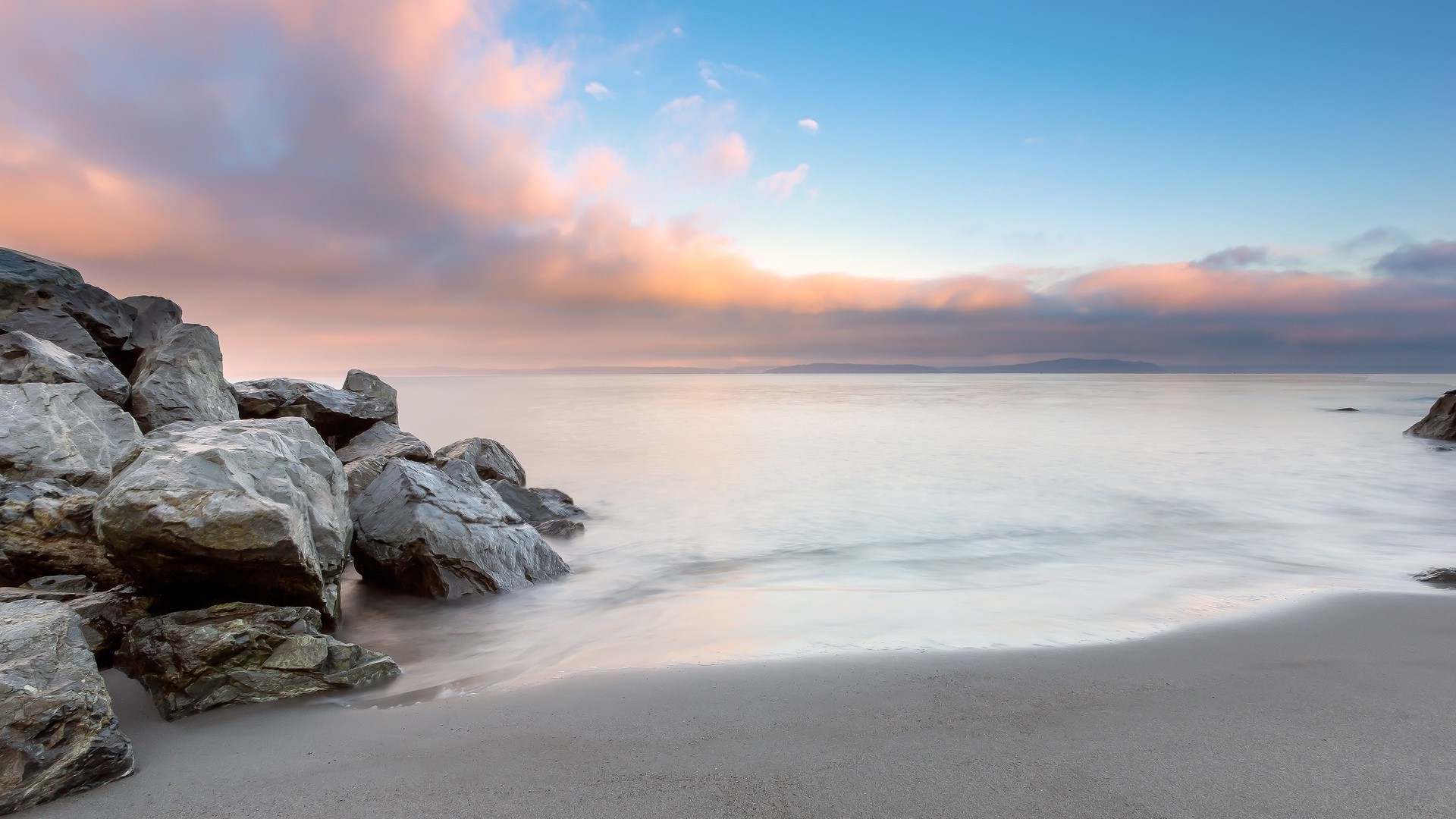 Puesta de sol en una orilla del mar desierta
