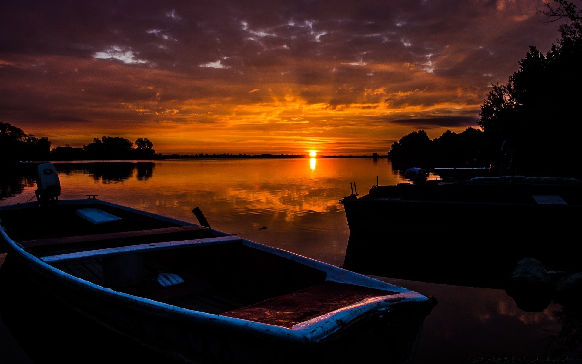 Hermosa puesta de sol de verano junto al lago