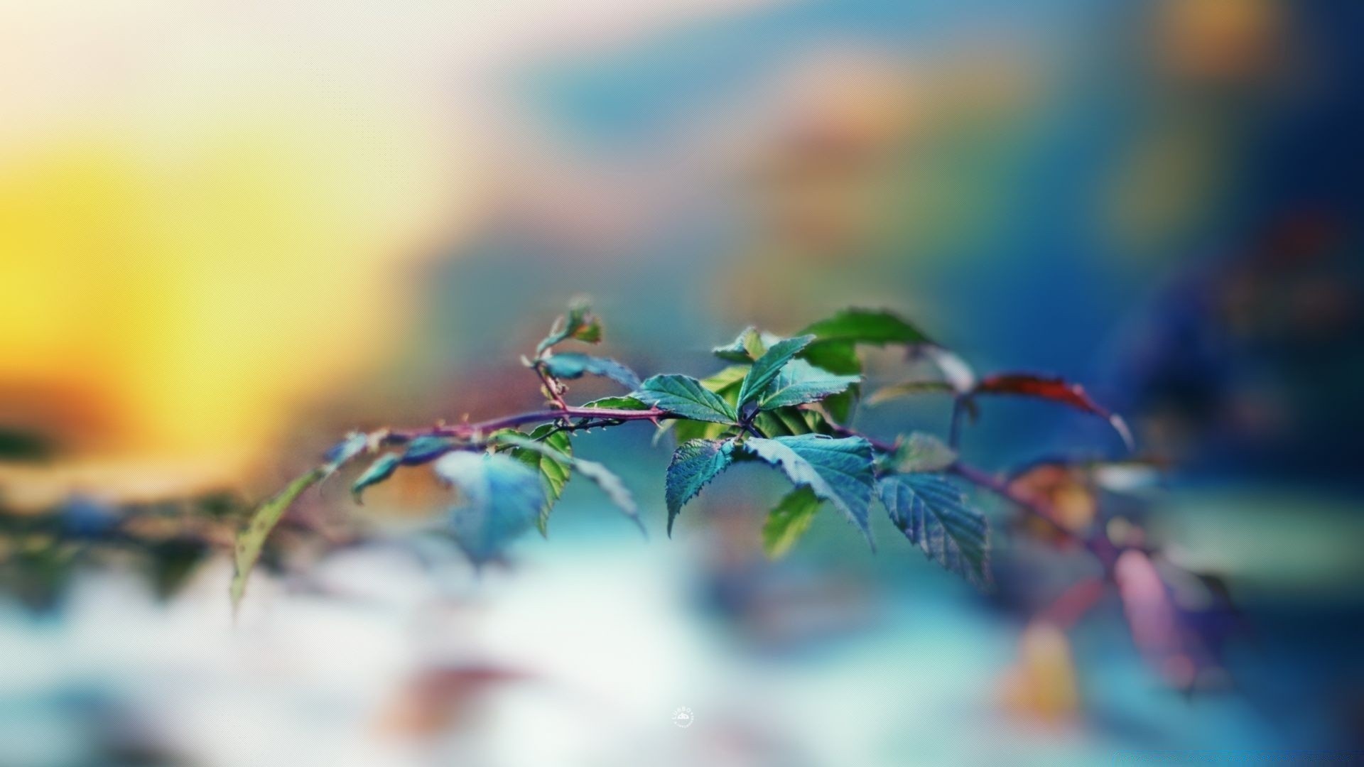 Rama con hojas y fondo borroso