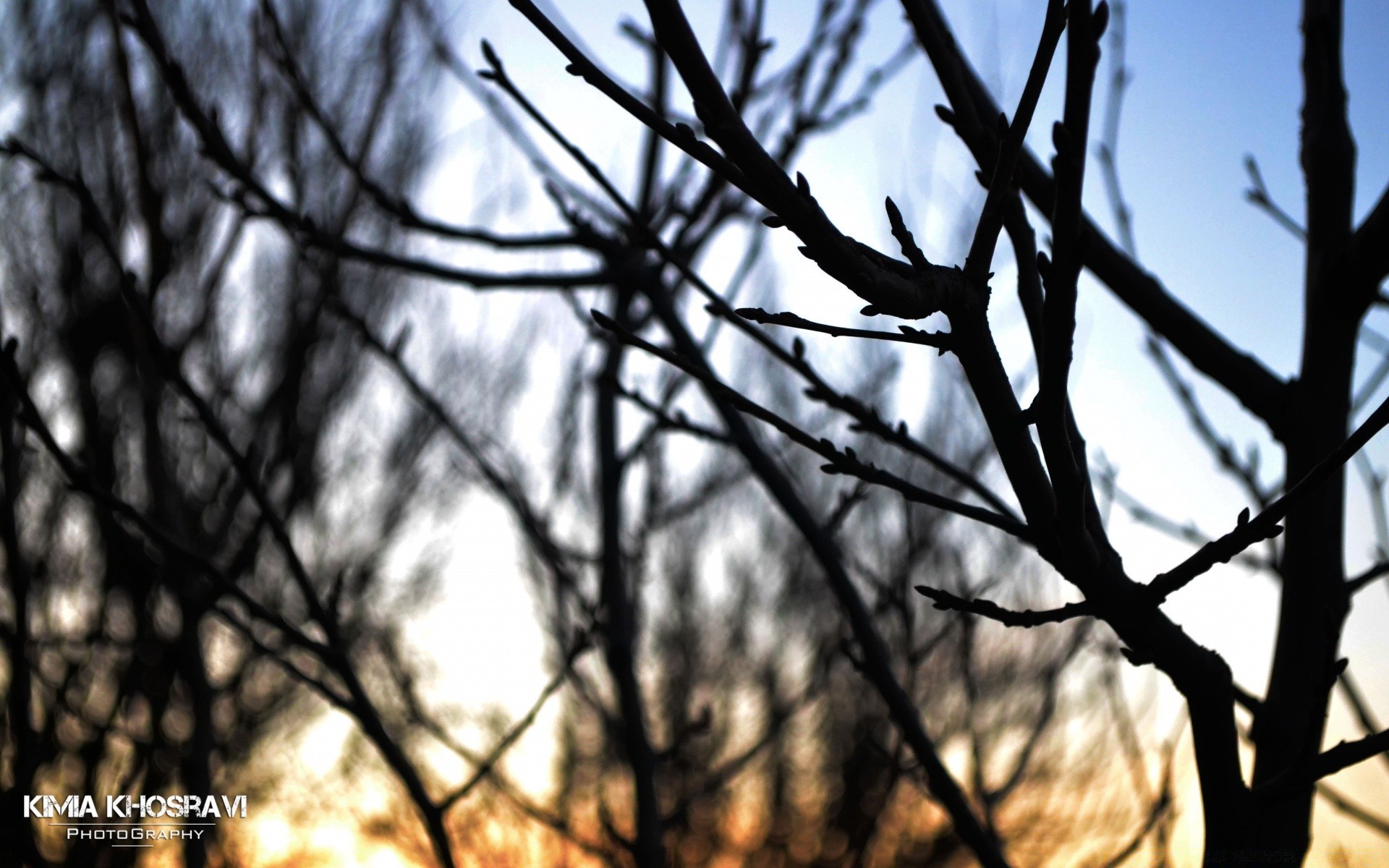 Ramas en el fondo de la puesta de sol de la tarde