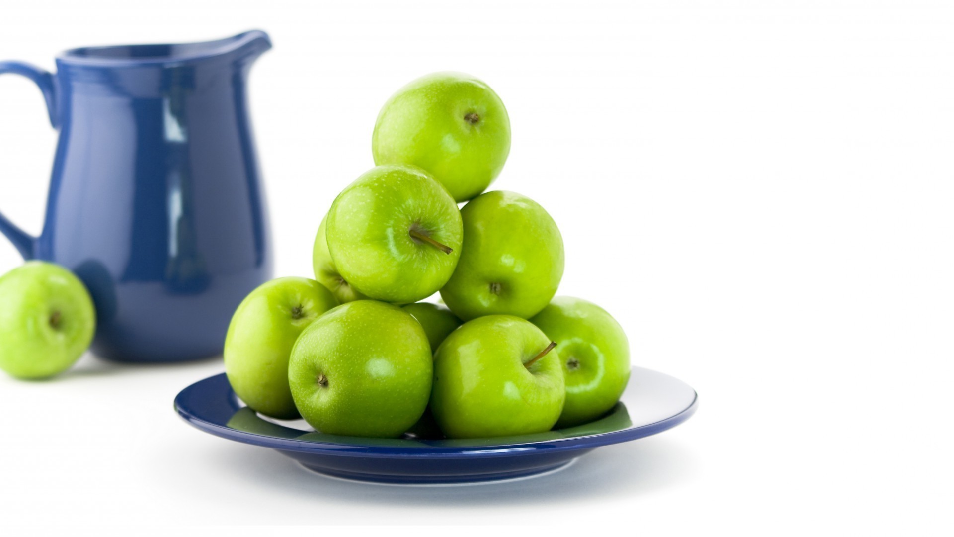 Manzana verde en plato y Tetera