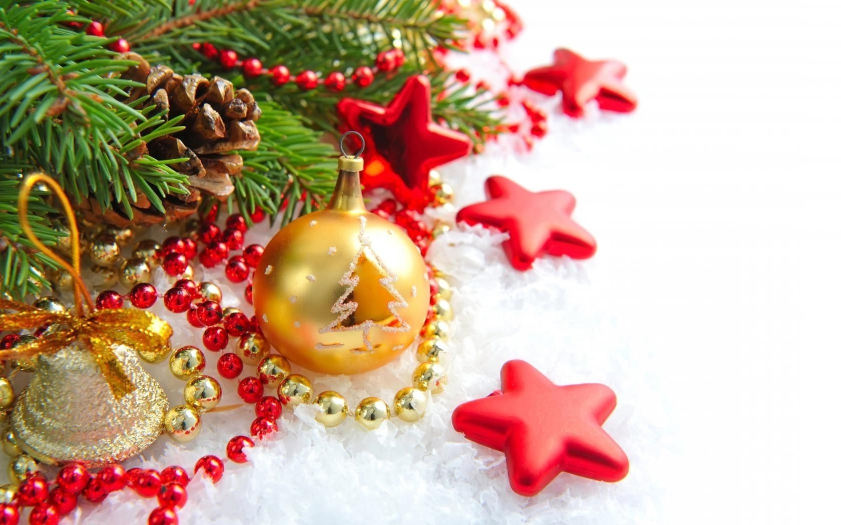 Imagen de Navidad con bolas rojas y ramas de árbol de Navidad