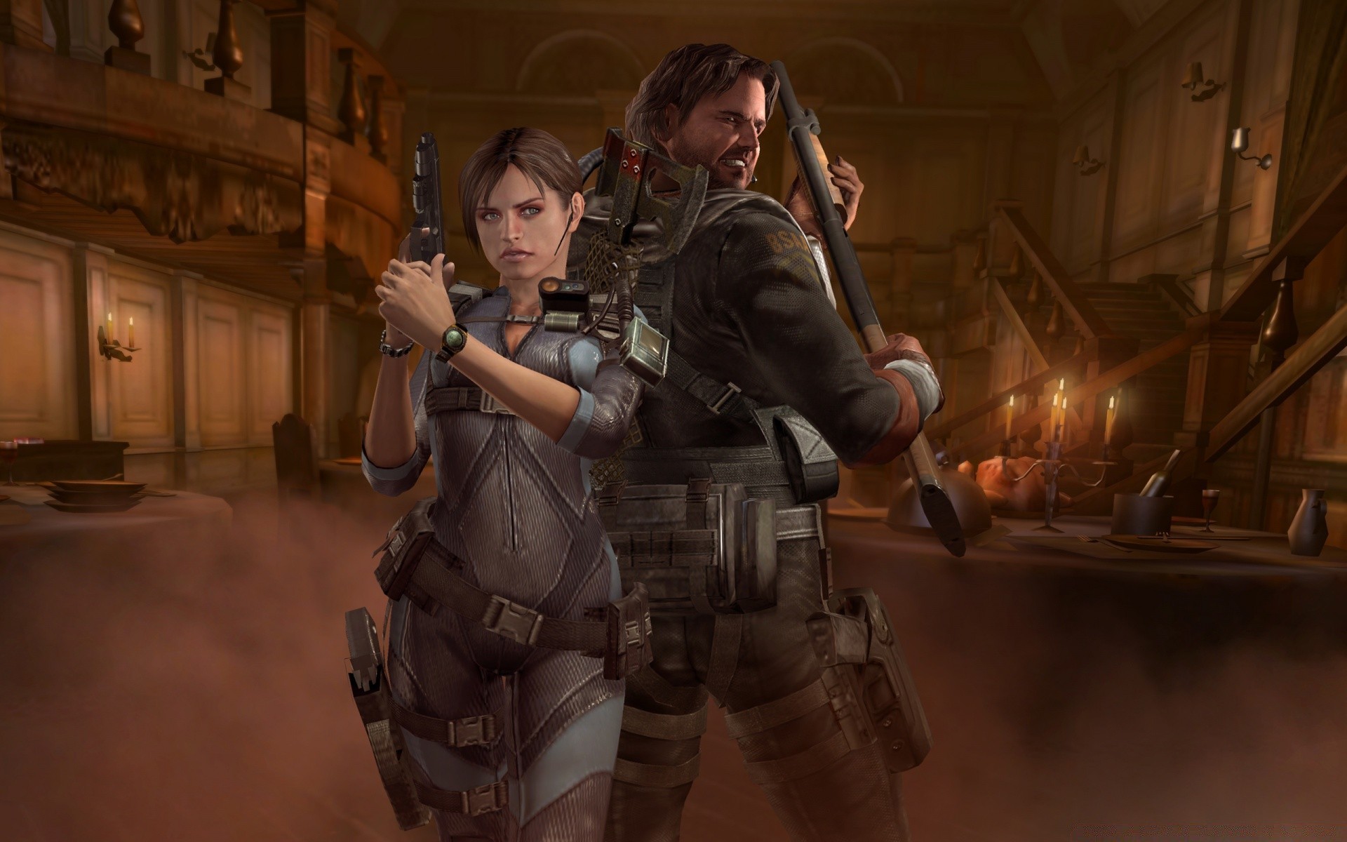 Resident evil. Hombre y mujer militares en el interior