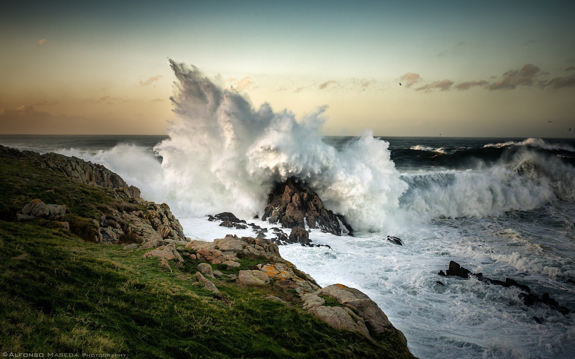 Cascada en la selva tropical y rocas cubiertas de musgo