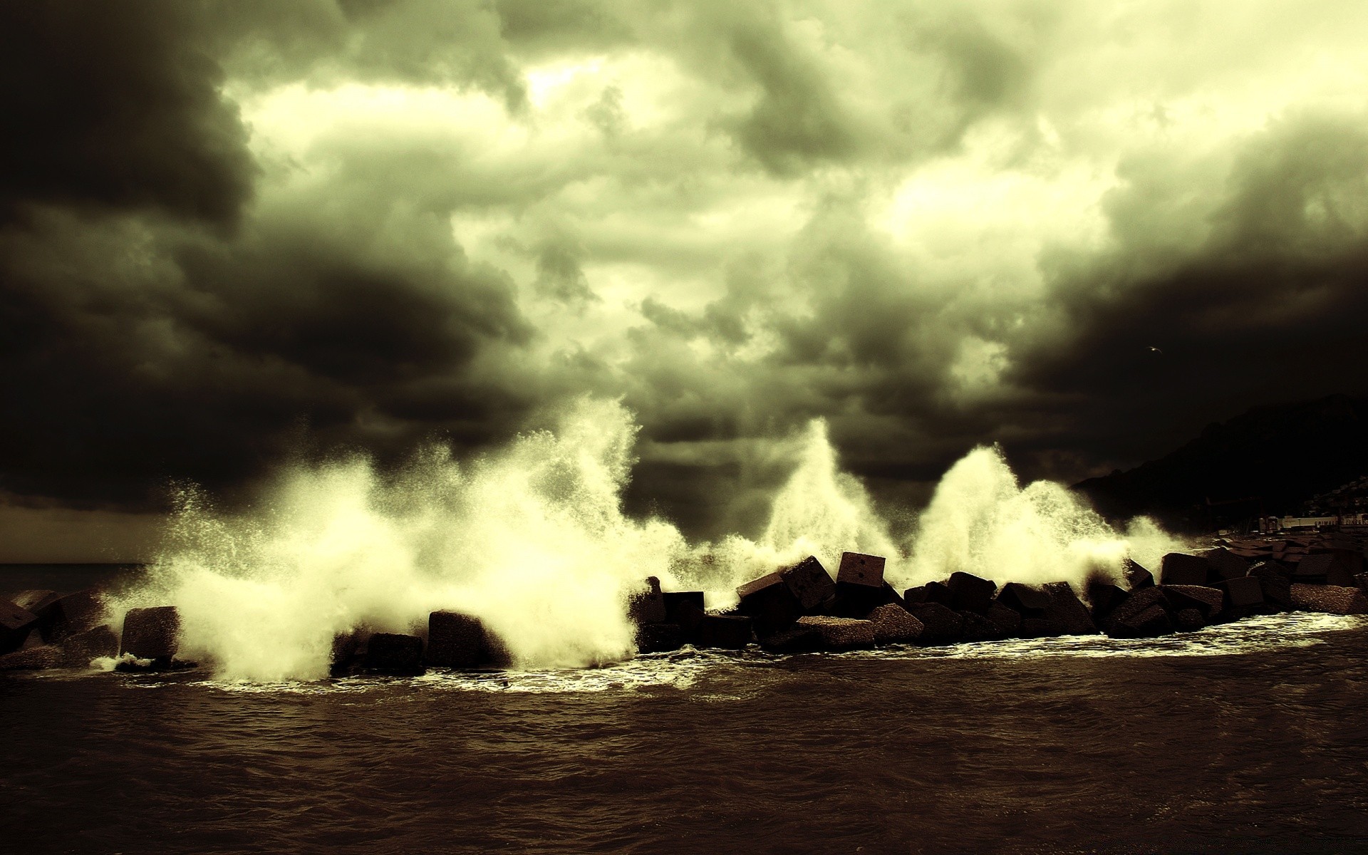 Las olas del mar golpean las rocas