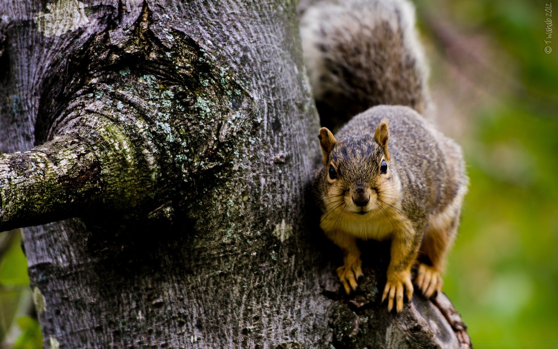 Curiosa ardilla en el tronco de un árbol