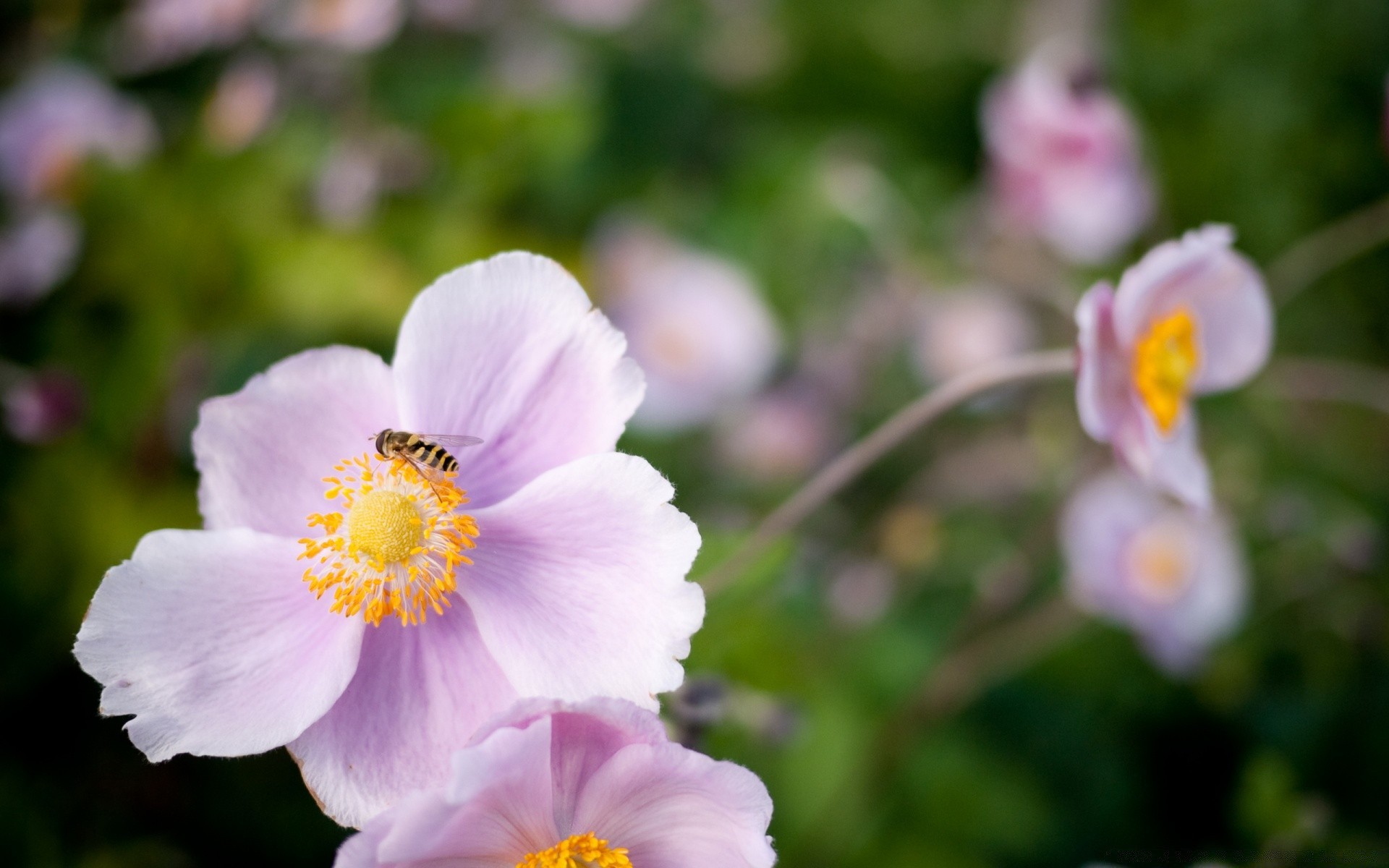 Hoverfly en una flor rosa