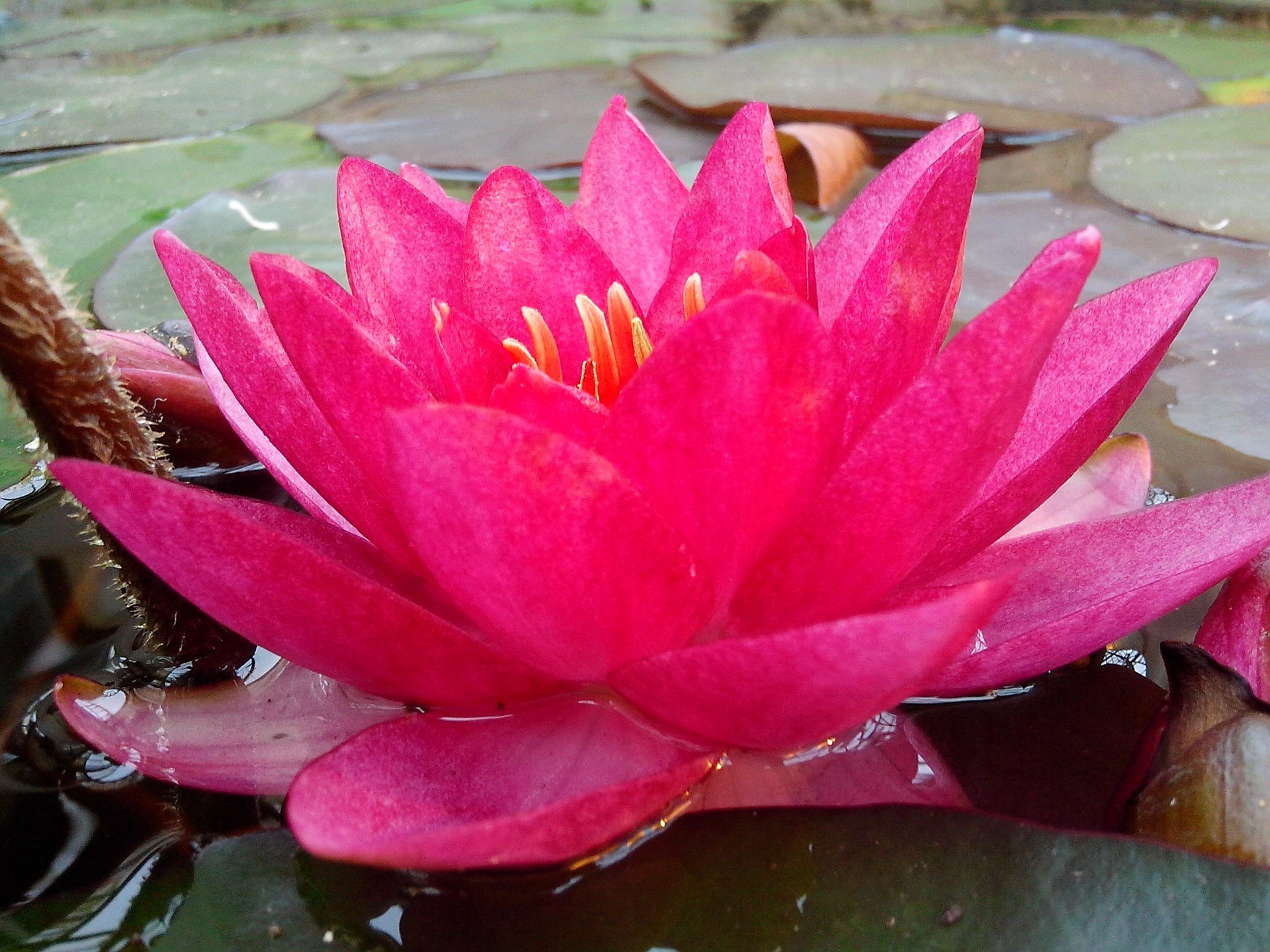 Gran flor de loto rosa en primer plano contra el fondo de las hojas