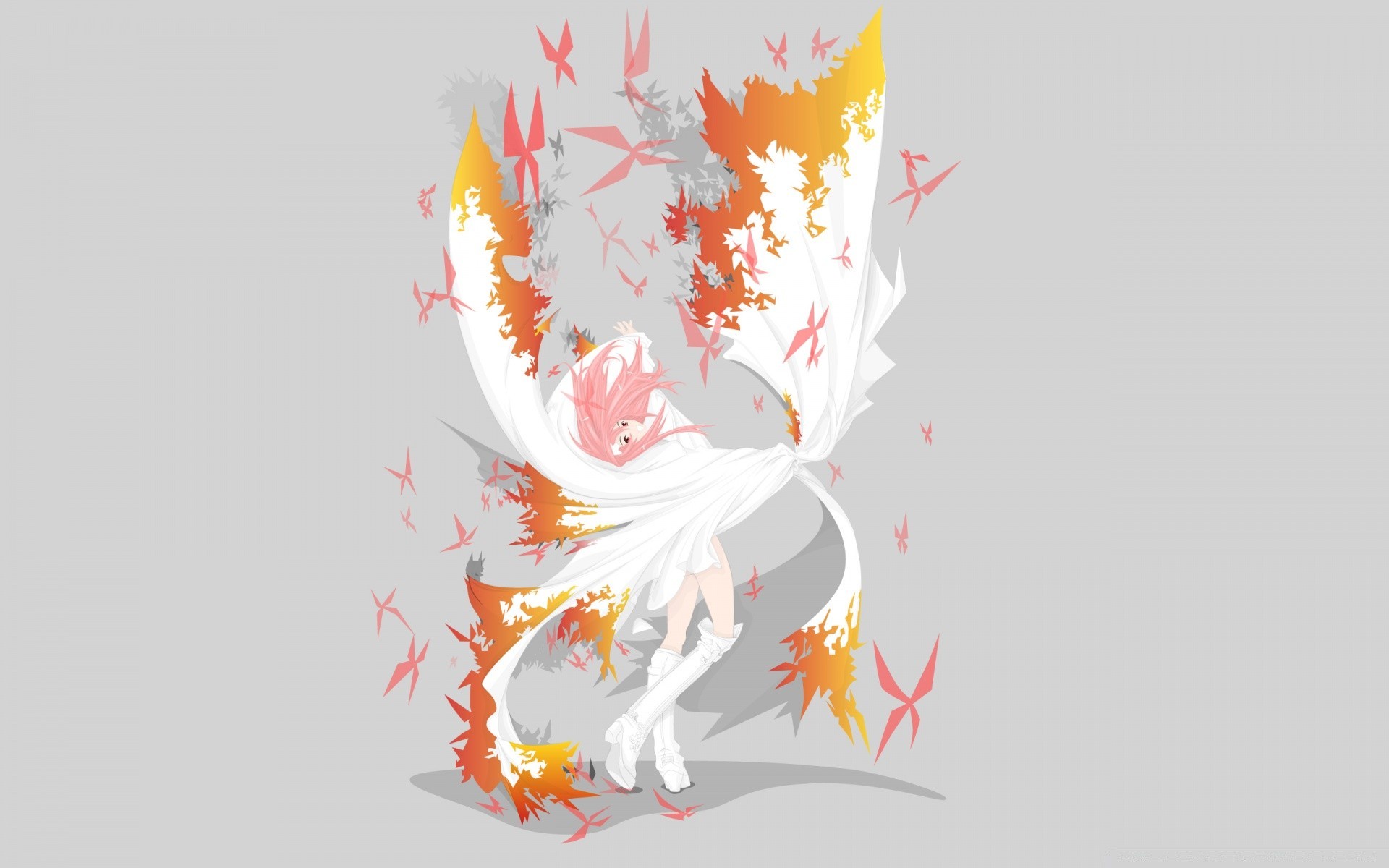 Chica con el pelo rosa en vestido blanco con mariposas anime