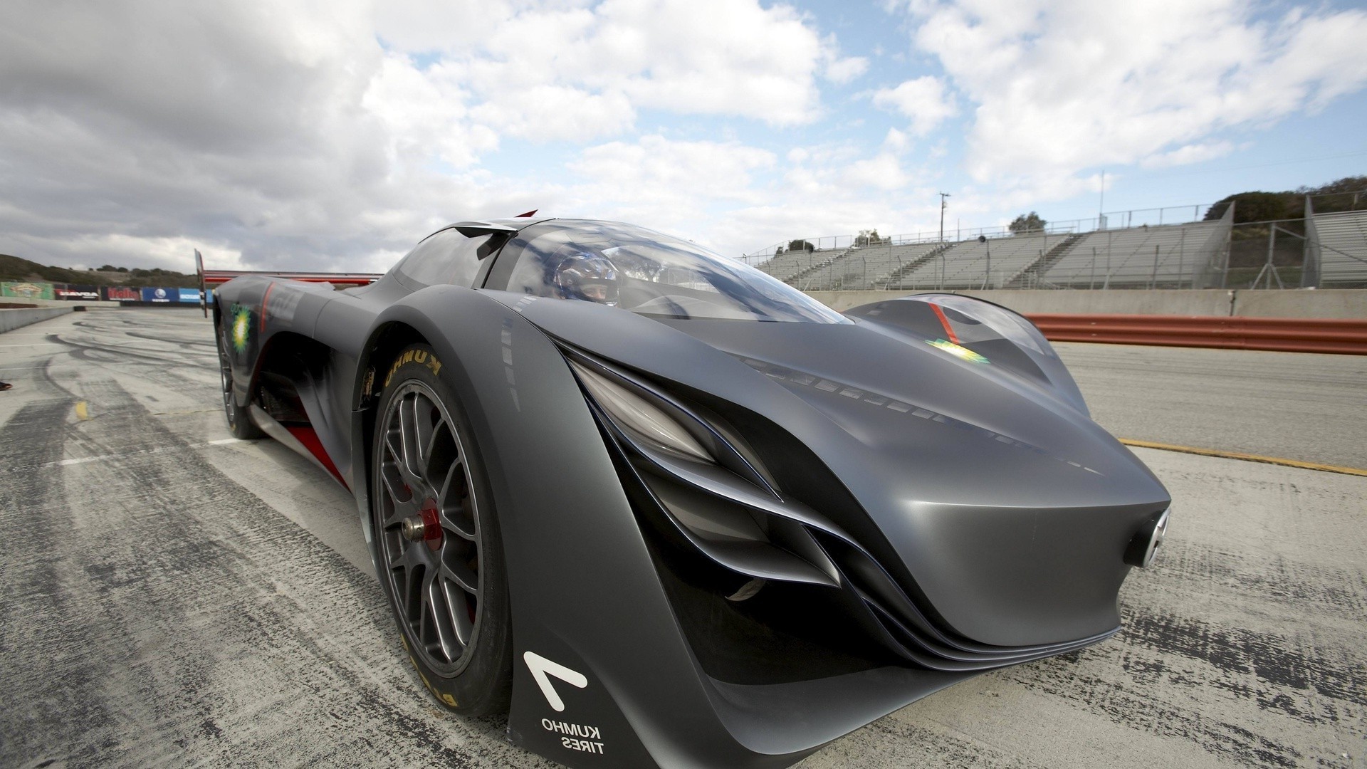 Coche deportivo negro mate en la pista. Discos. Ruedas
