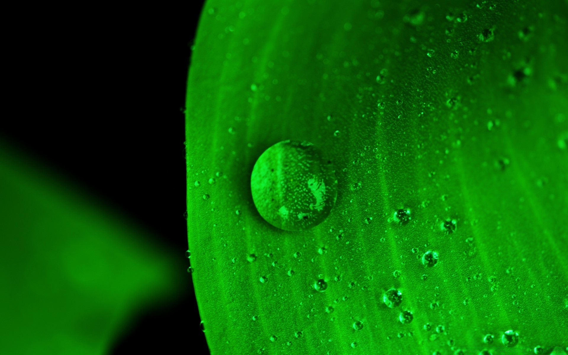 Aumento de la gota de rocío en la hoja verde