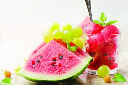 Sandía jugosa con fruta dentro