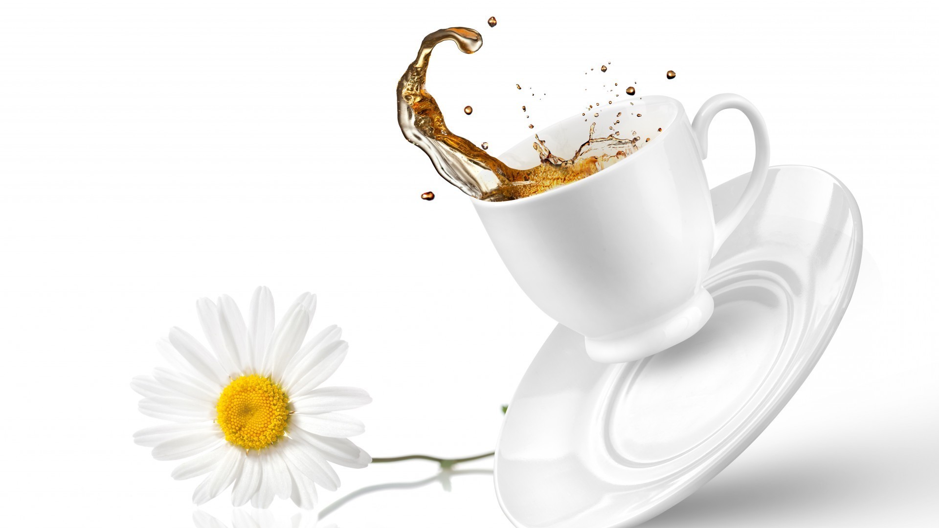 El té en un juego blanco se derrama sobre la manzanilla