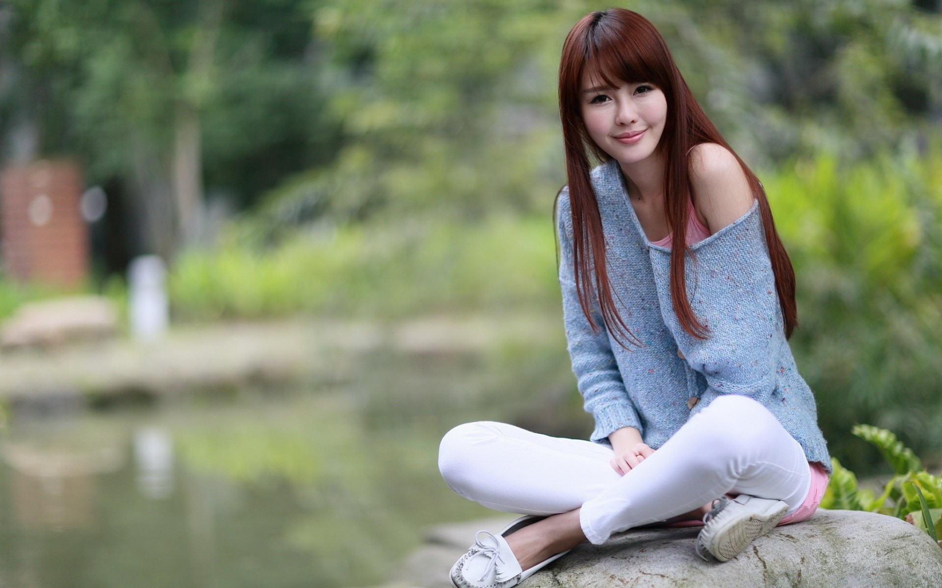Chica con el pelo largo se relaja al aire libre