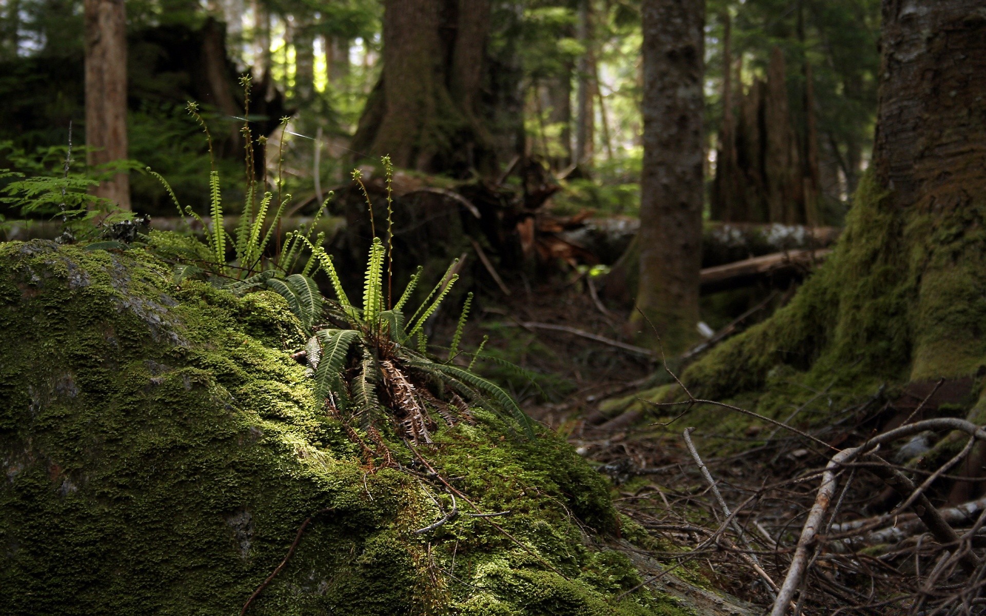 Alfombra verde de musgo húmedo