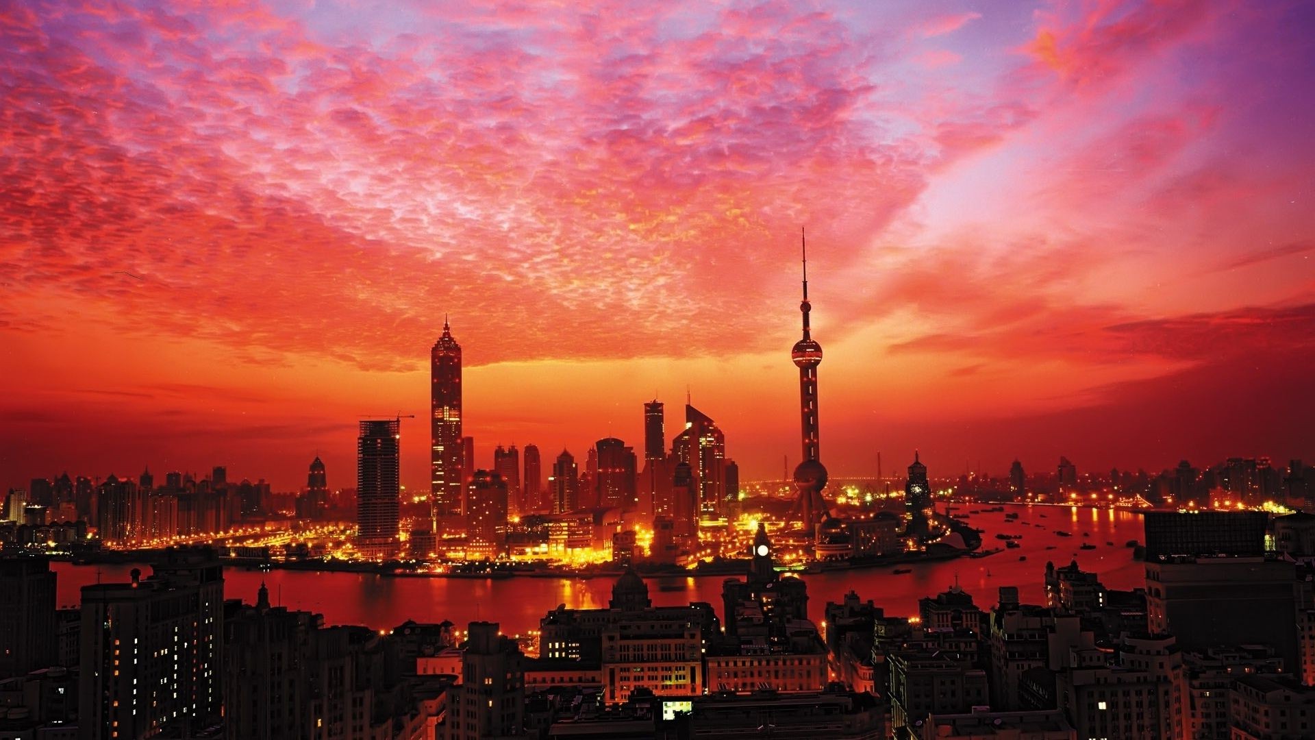 Extraordinaria belleza puesta de sol sobre la ciudad