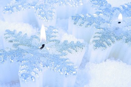 Velas ardientes en forma de copos de nieve