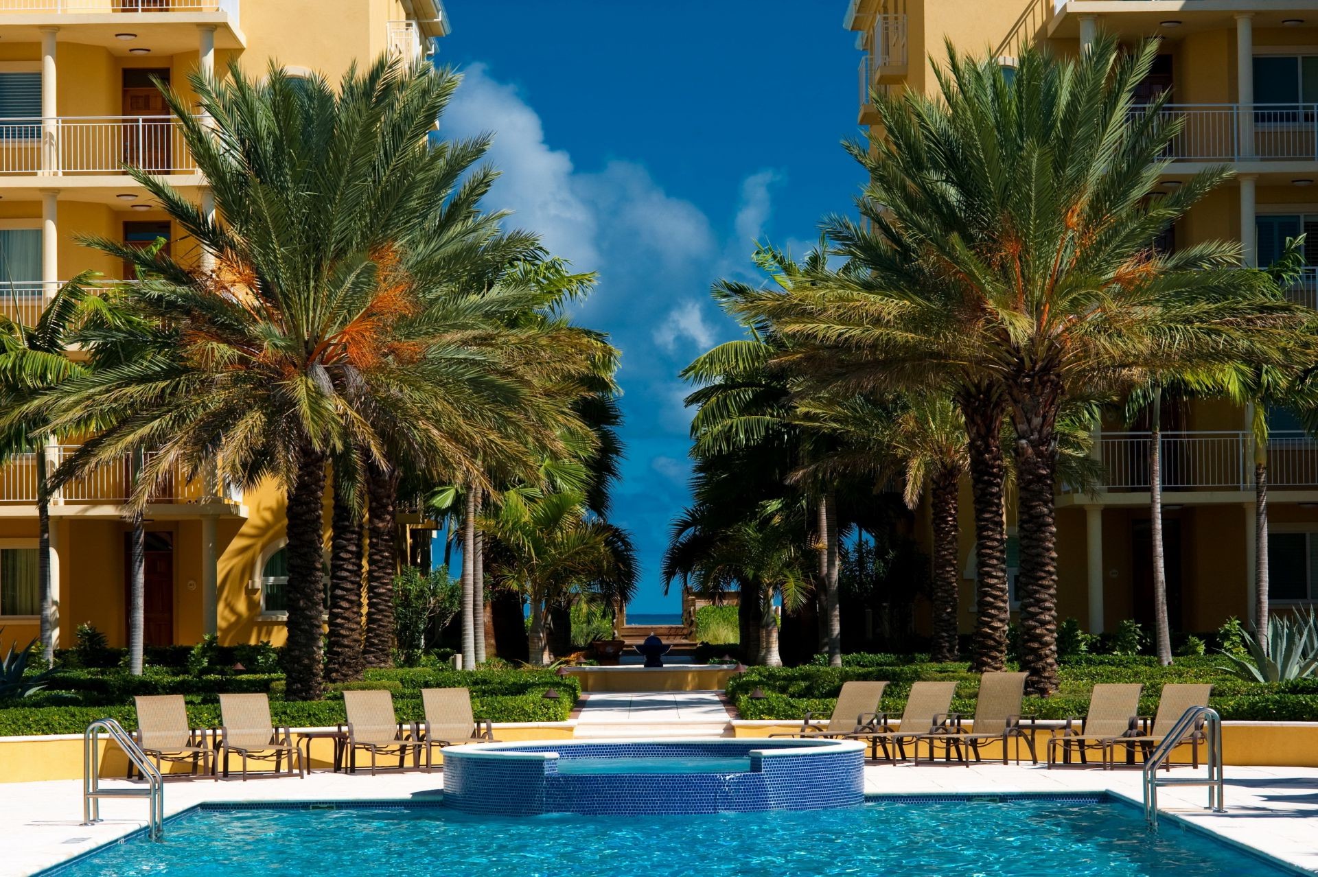 Hotel. Piscina. Palma. Tumbonas. Sol. Vacaciones