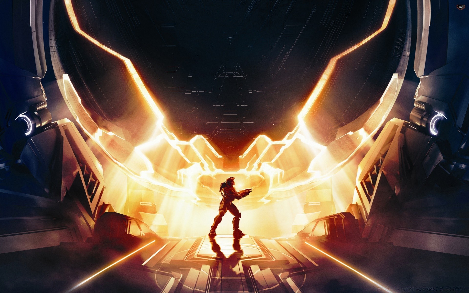 La silueta de un hombre en un traje de hierro desde lejos
