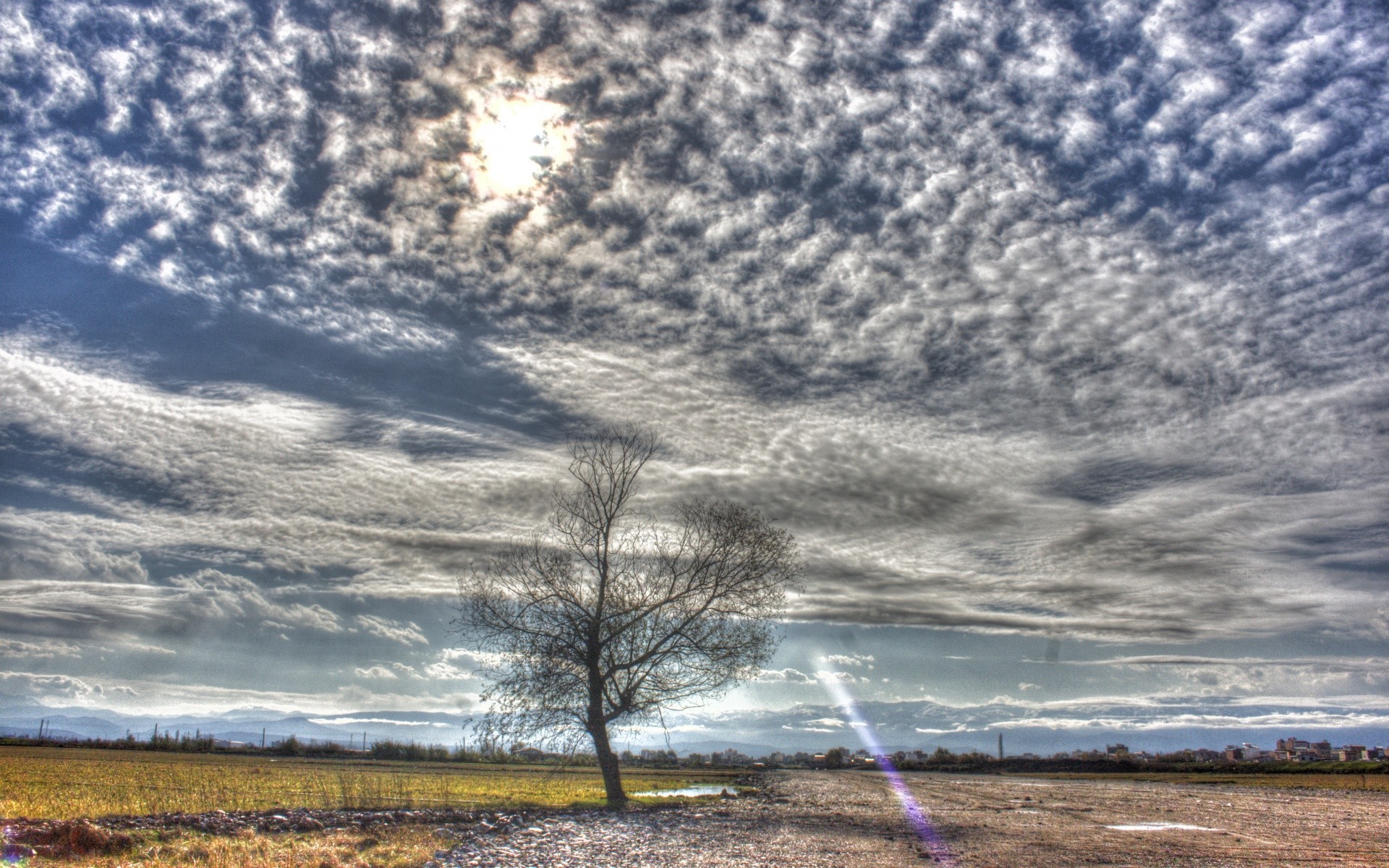 La tierra, durante mucho tiempo sin agua en el fondo del cielo rosa