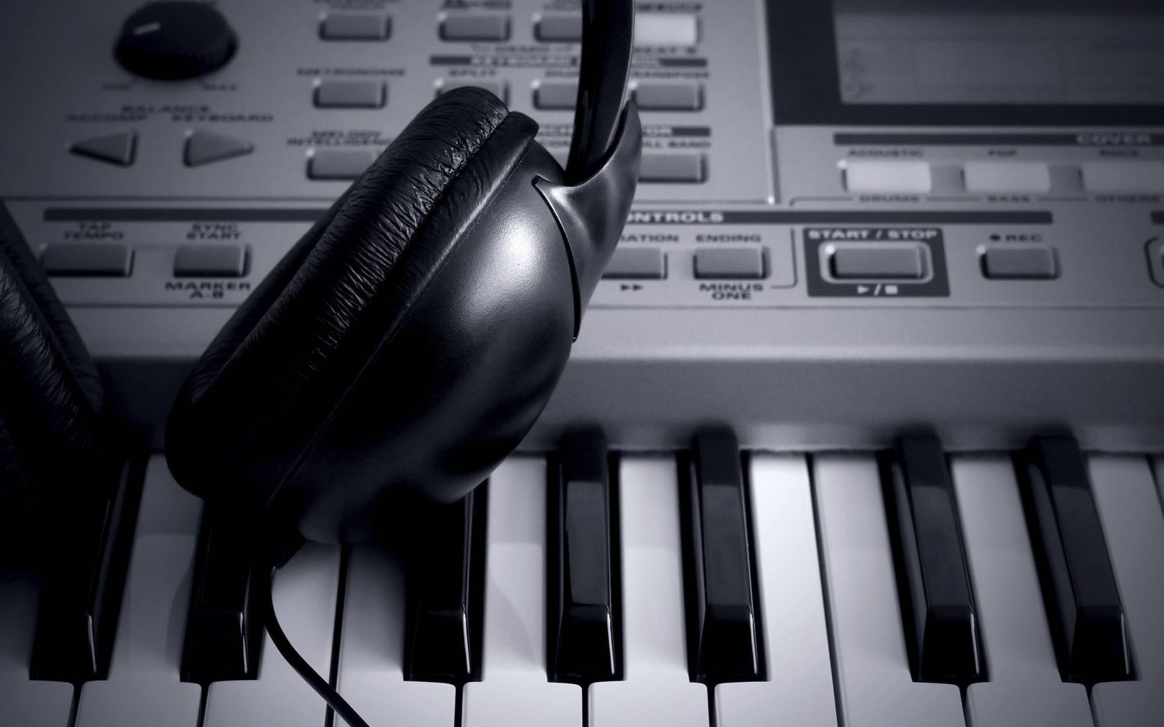 Los auriculares se encuentran en el teclado del sintetizador