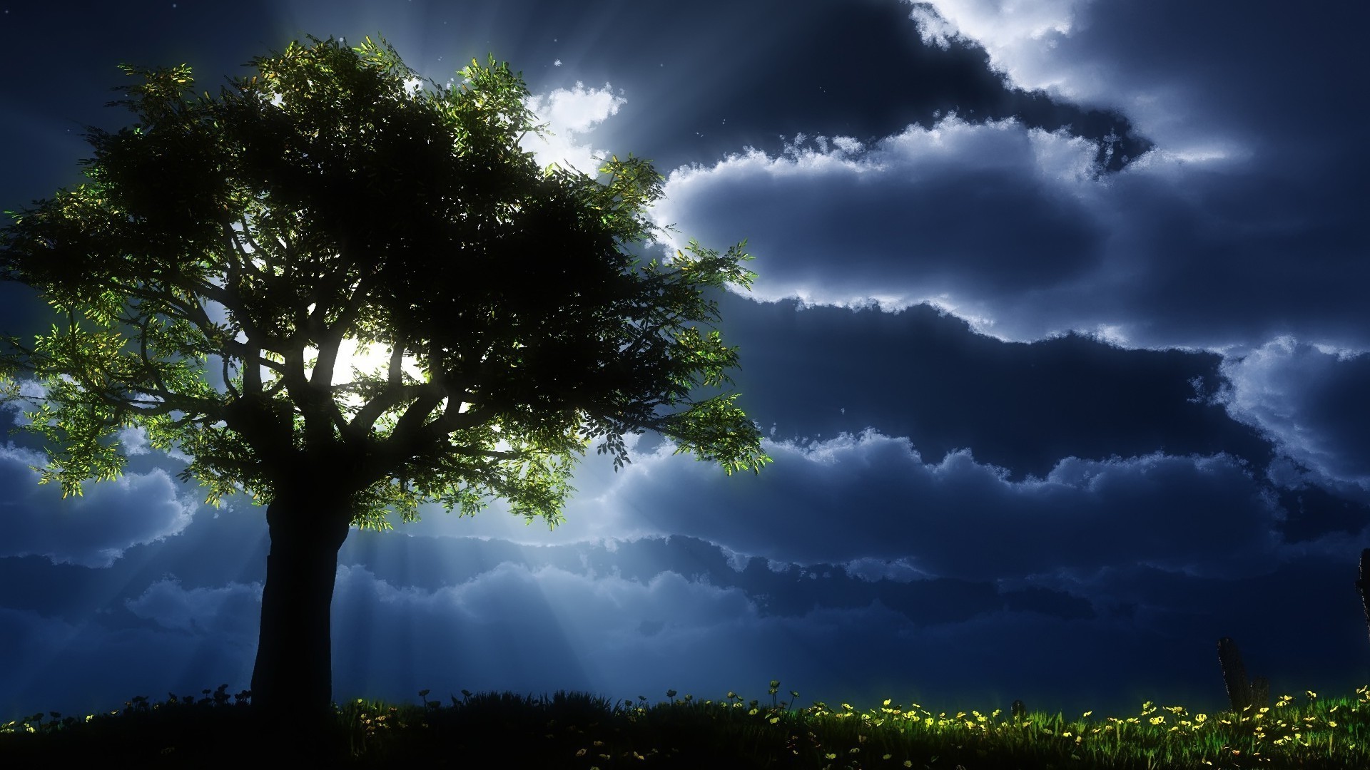 Silueta de un árbol en el fondo de una puesta de solSilueta de un árbol en el fondo de una puesta de sol