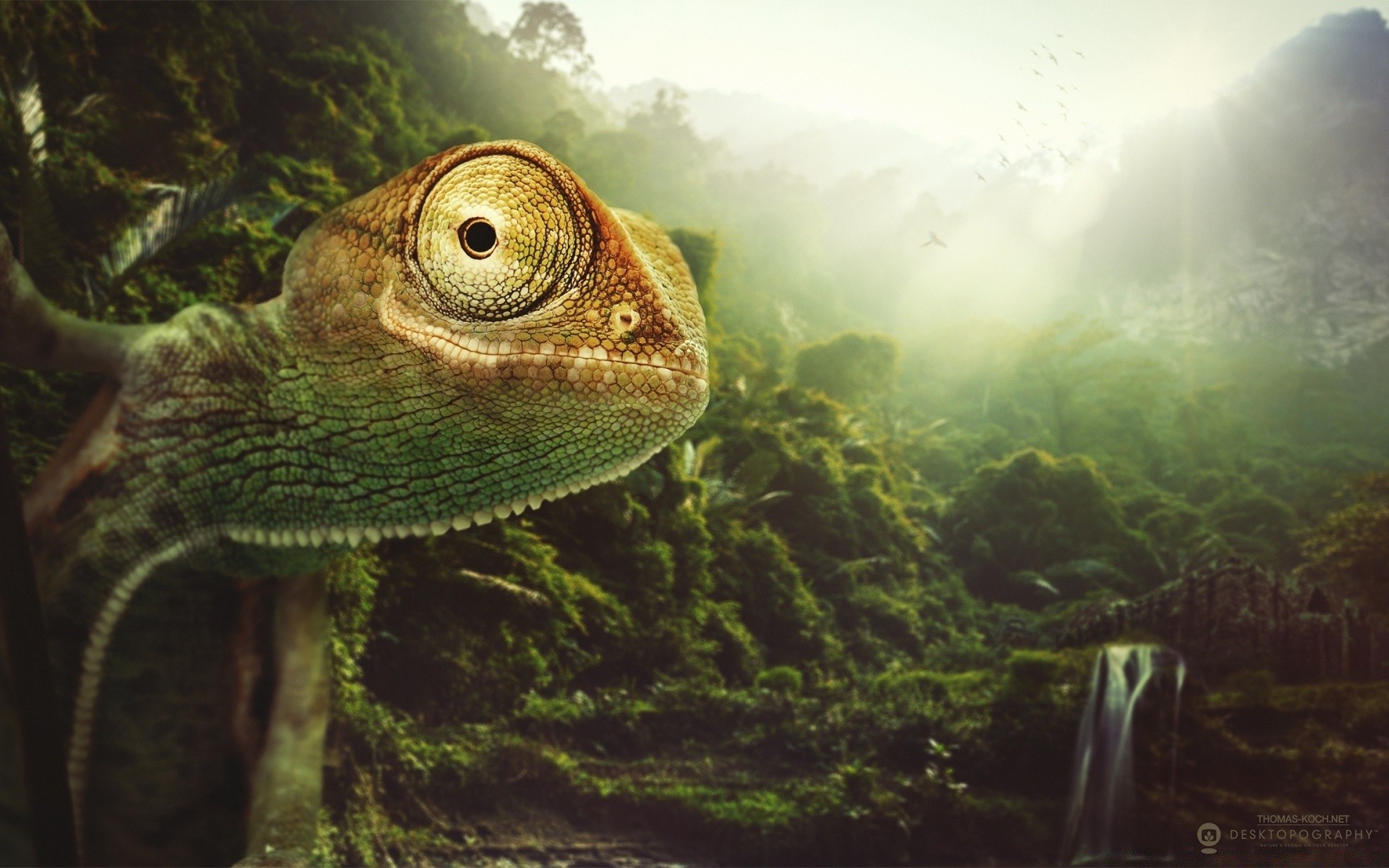 Camaleón tropical abultado ojos, animal