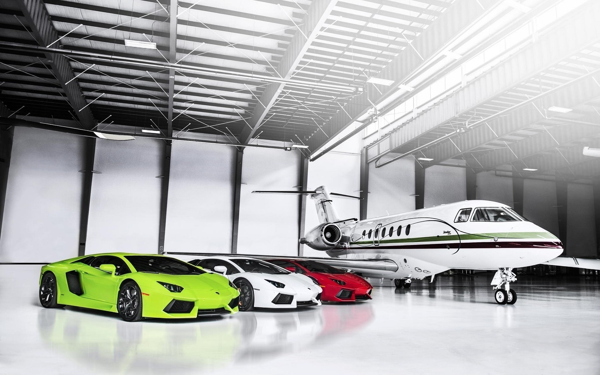 Coche rojo en el garaje blanco