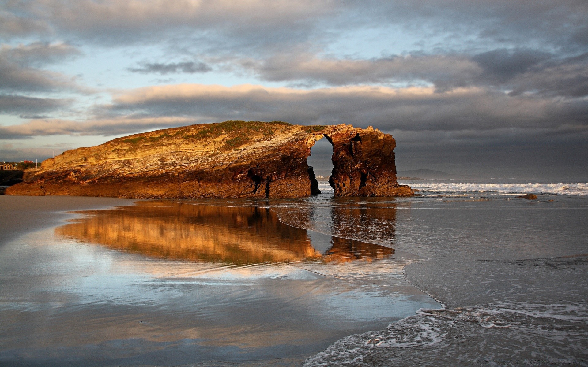Las aguas del océano en los colores de la puesta de sol de la tarde