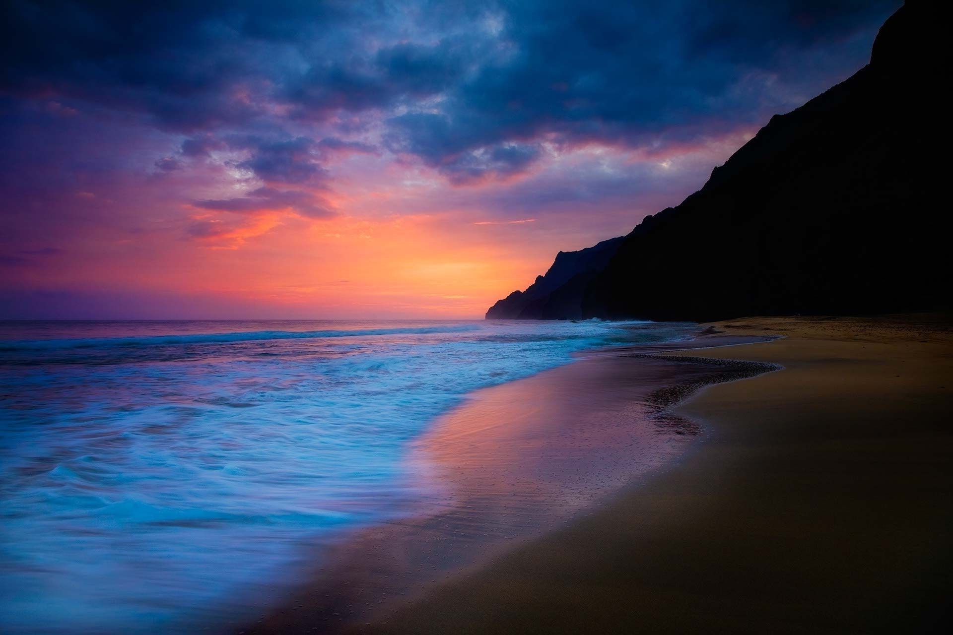 El viajero junto al mar está iluminado por los tenues rayos del sol detrás de la montañaEl viajero junto al mar está iluminado por los tenues rayos del sol detrás de la montaña