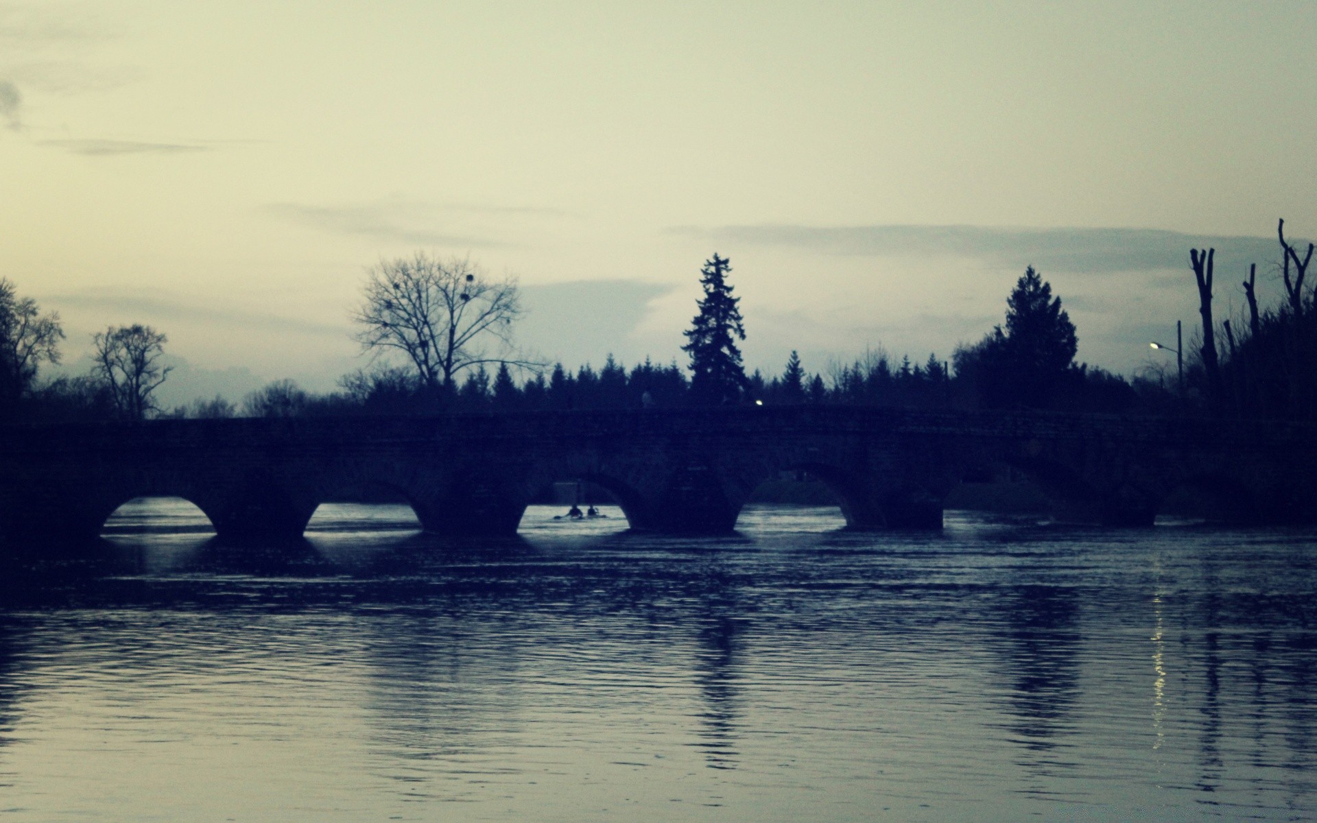Terreno inundado y árboles oscuros
