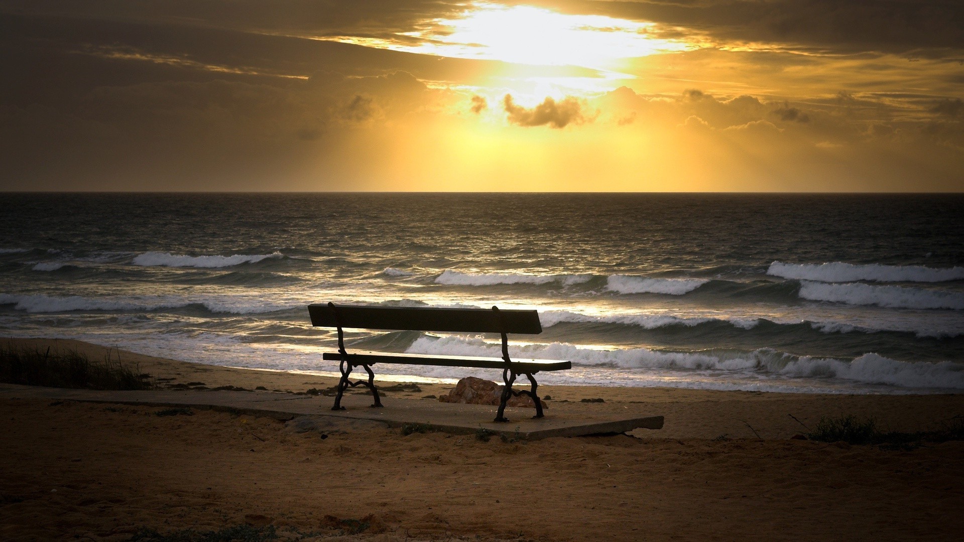 Tienda junto al mar al atardecer