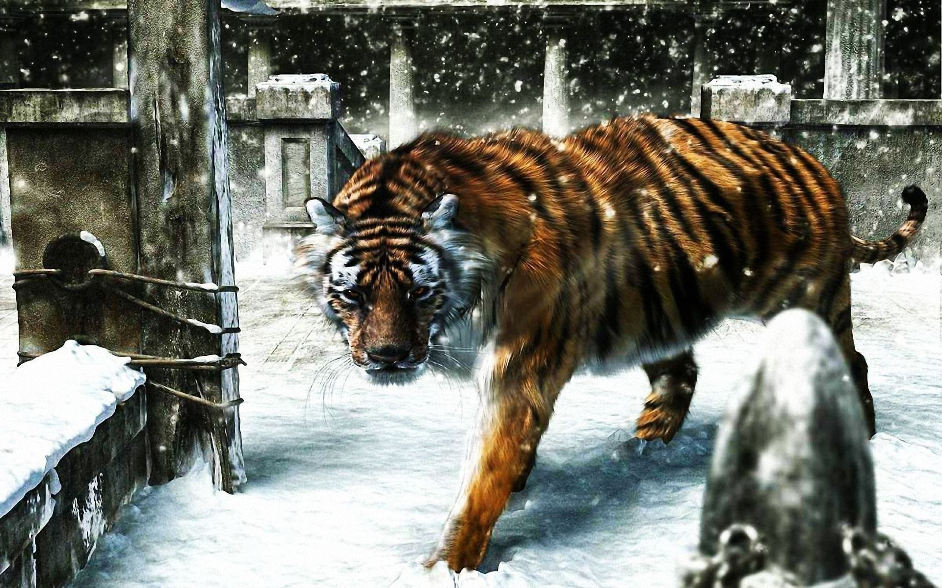Tigre corriendo en la nieve como en el agua
