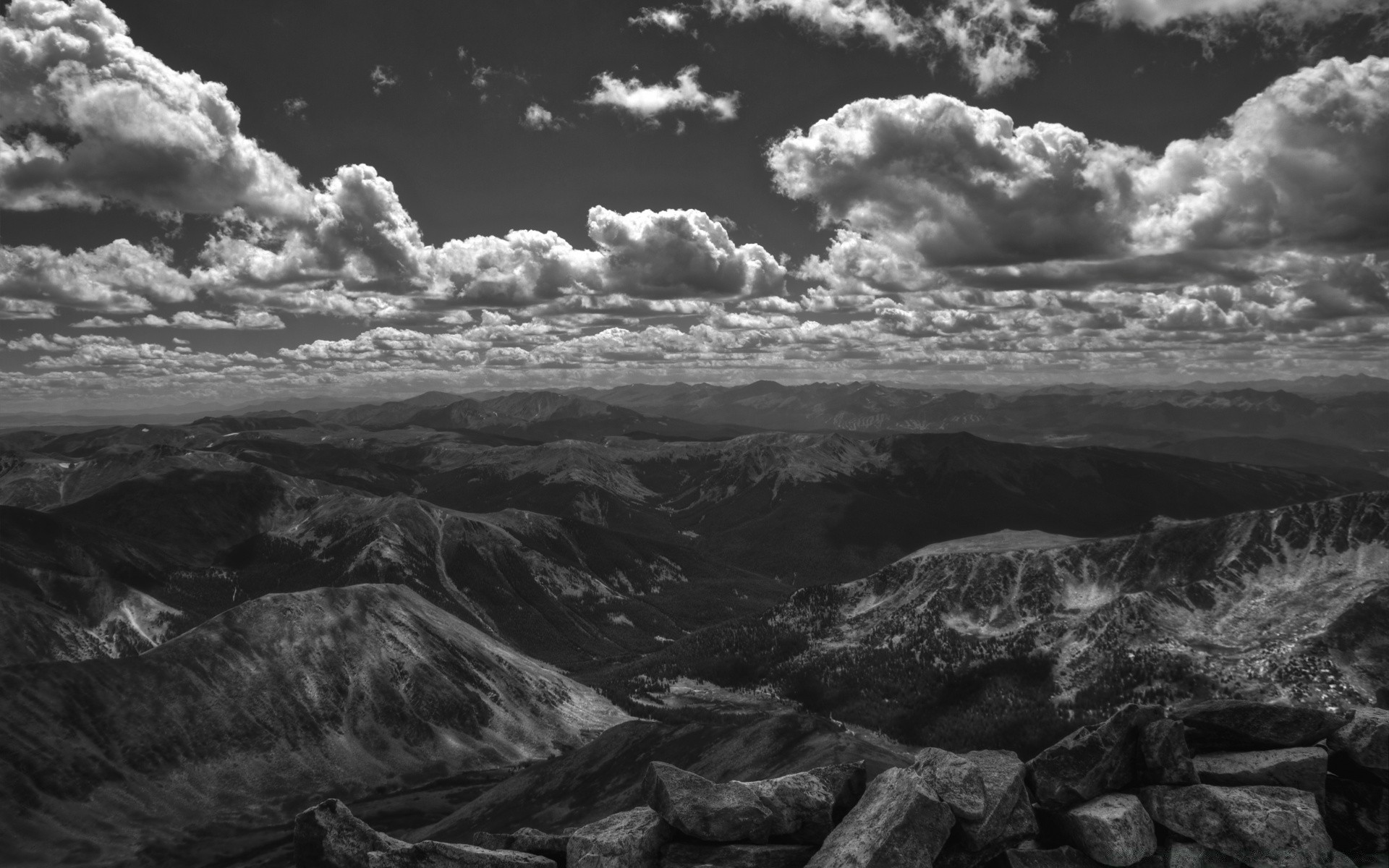 Fotografía en blanco y negro de la costa antes de la tormenta