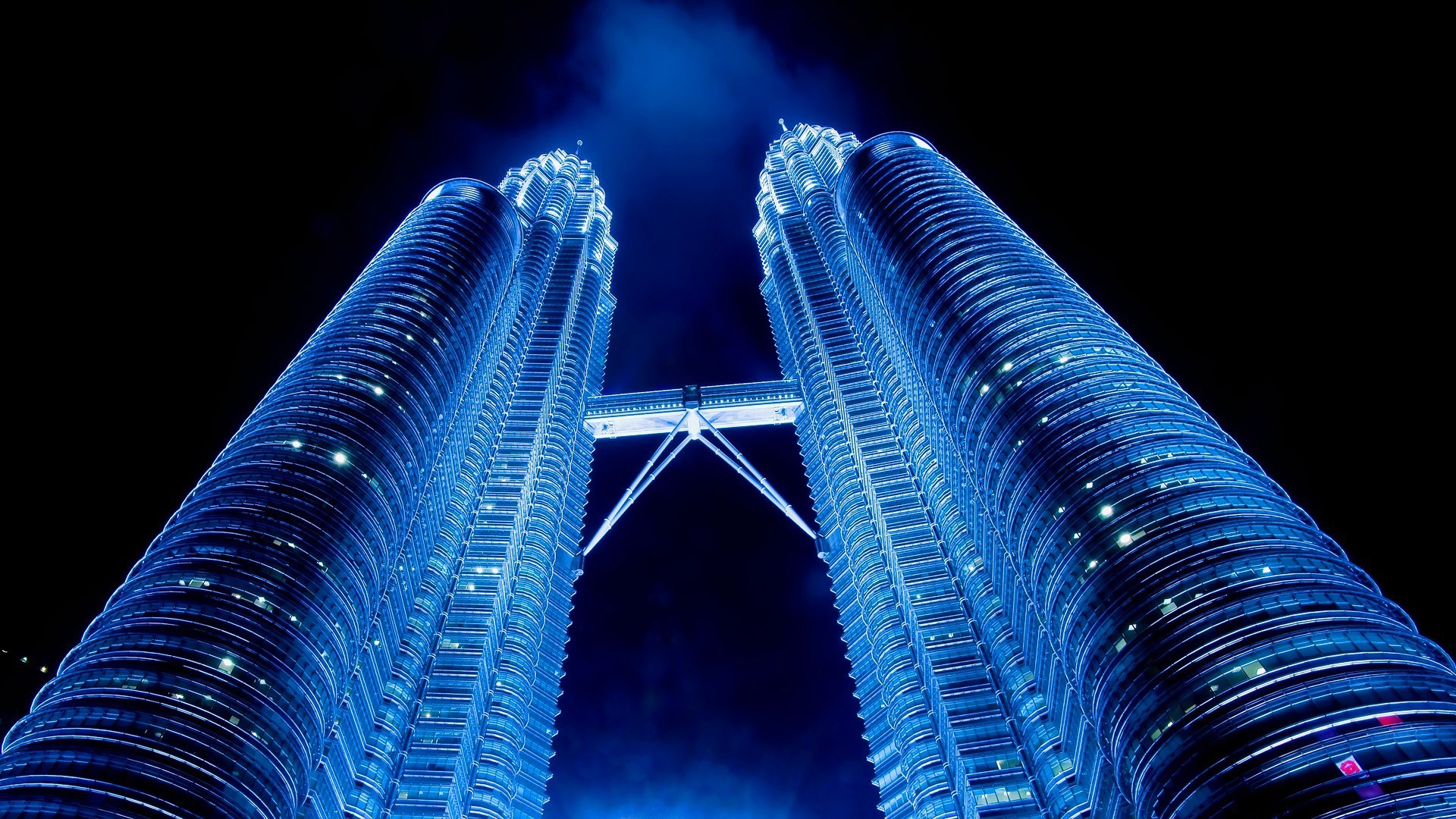 Solitaria de varios pisos en la carretera en la iluminación de la noche de las linternas