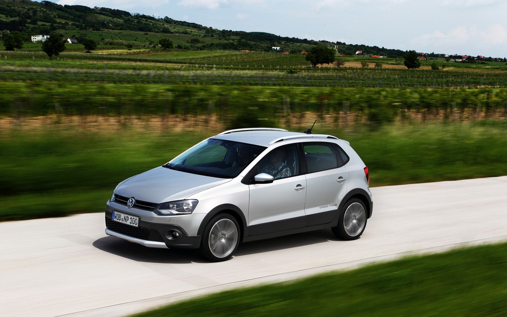 Coche volkswagen gris en la carretera