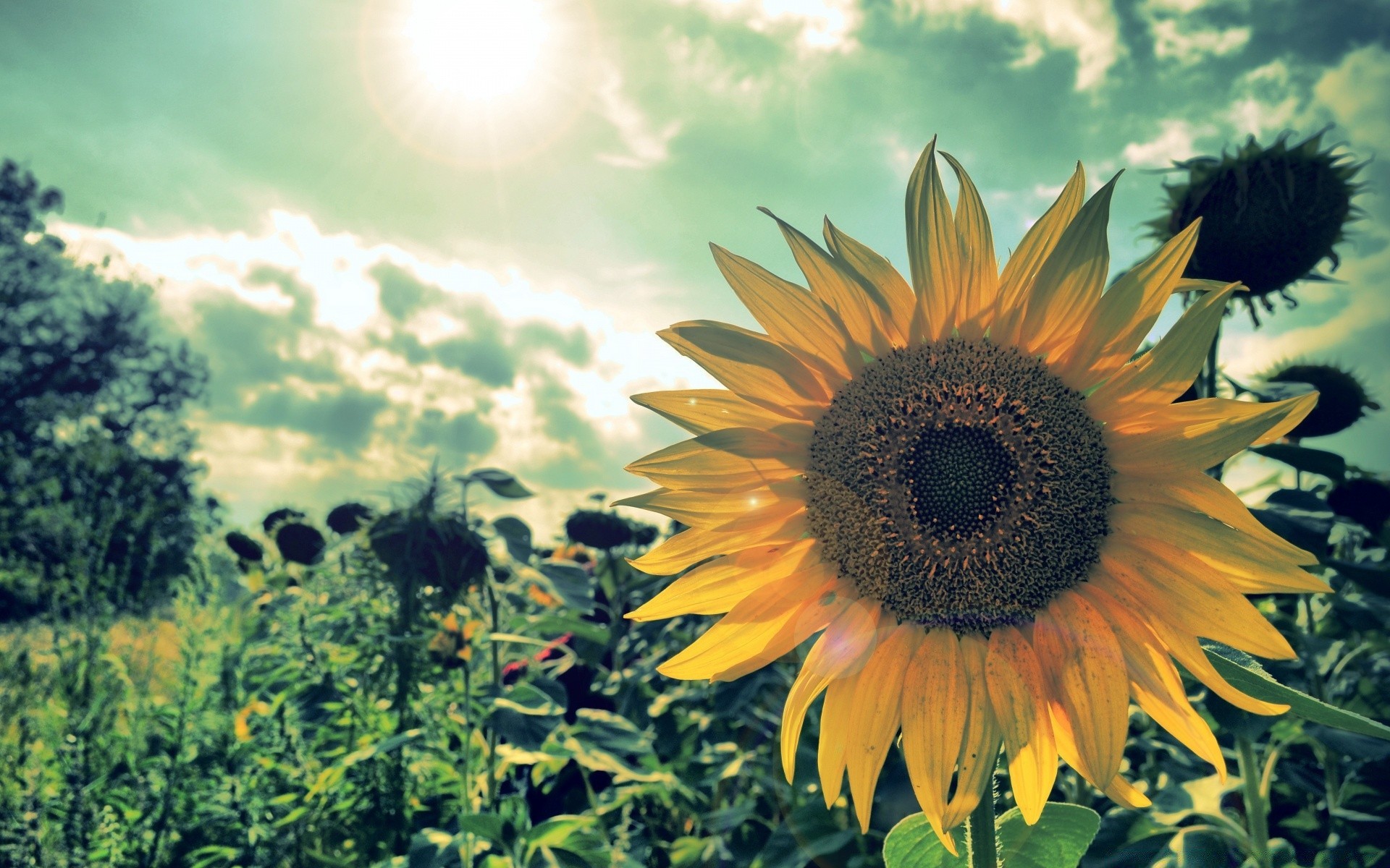 Paisaje de verano con girasol