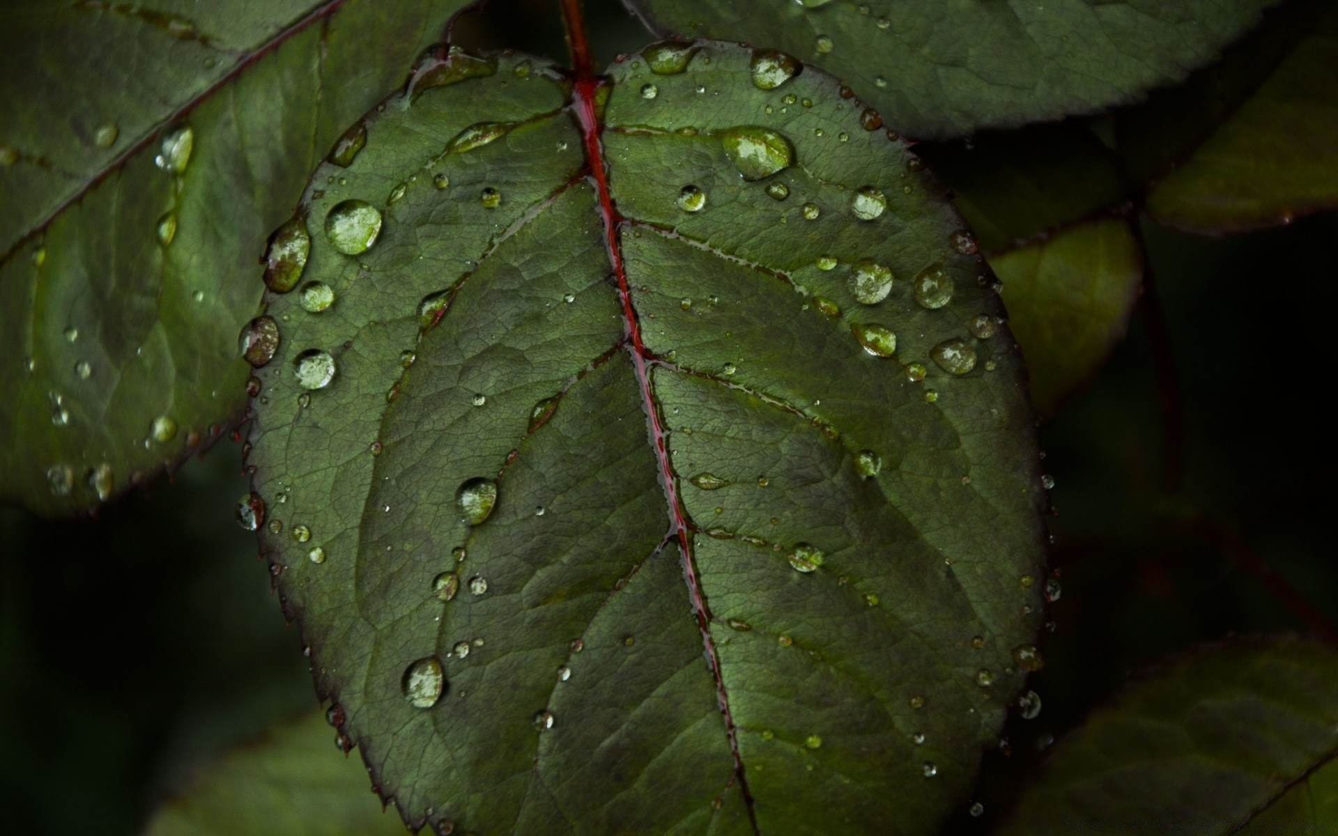 Rocío en una hoja. Una gota de rocío. Hoja verde