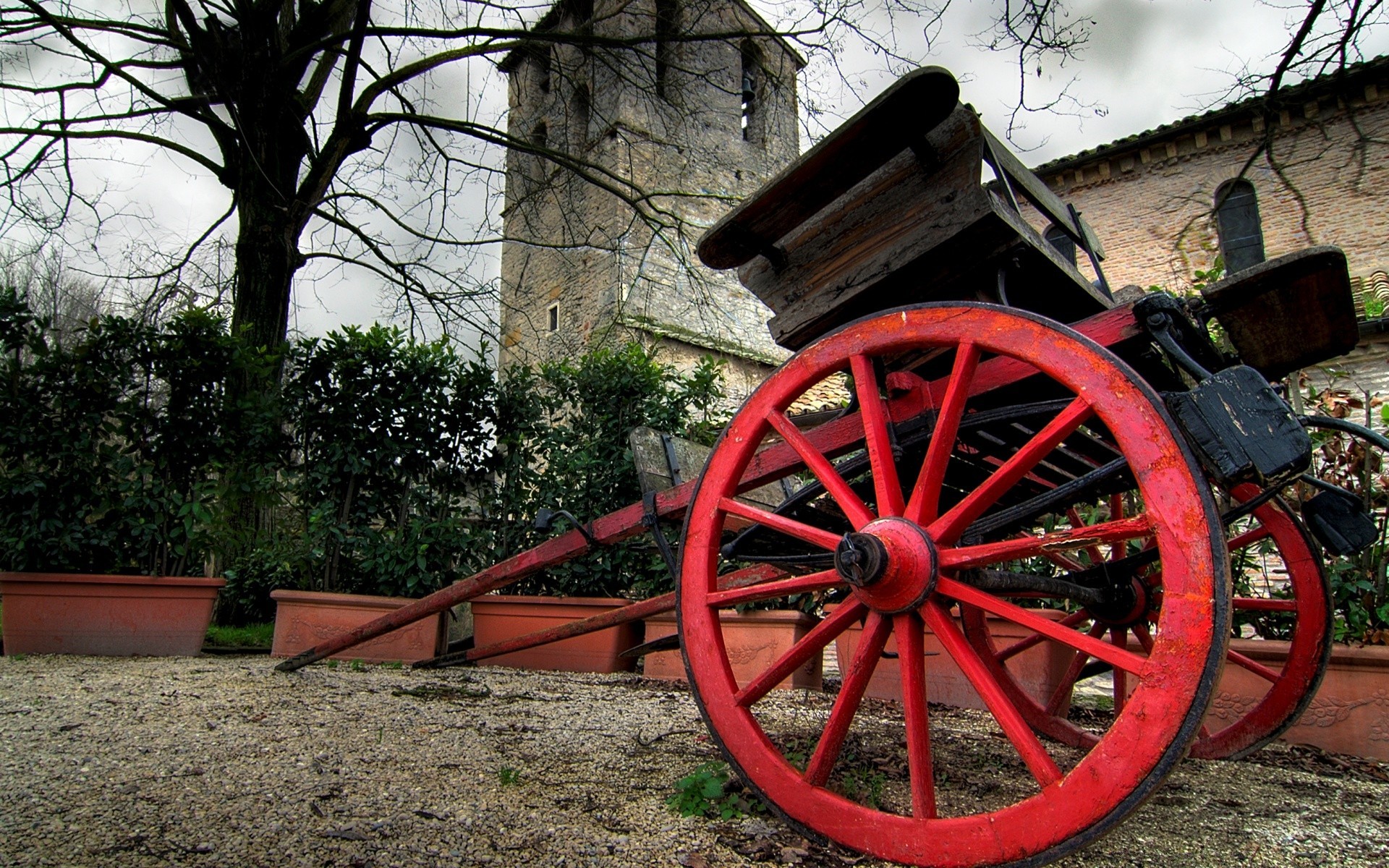 Ruedas enormes en el carro, vintage vintage, estilo europeoRuedas enormes en el carro, Vintage Vintage, estilo europeo