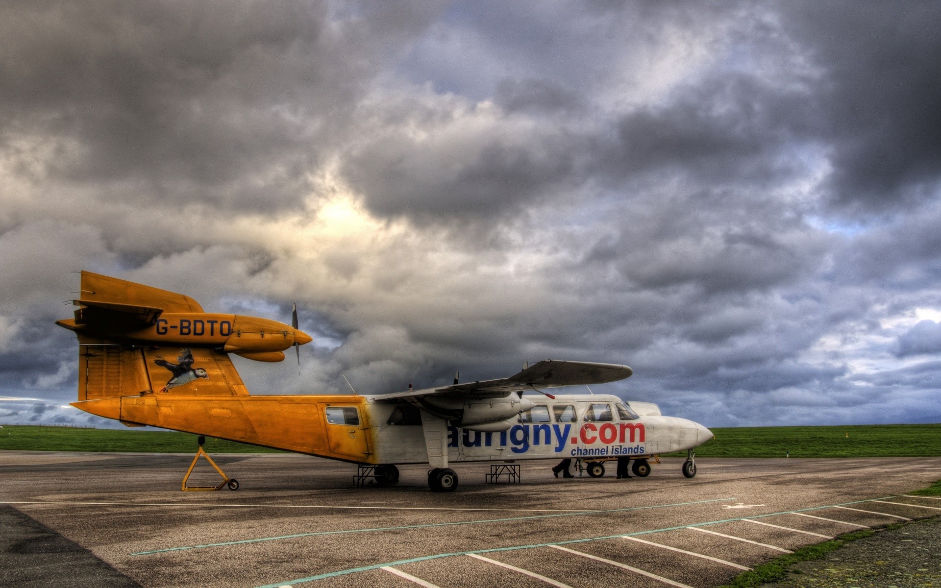 Un viejo avión de pie contra un cielo de plomo
