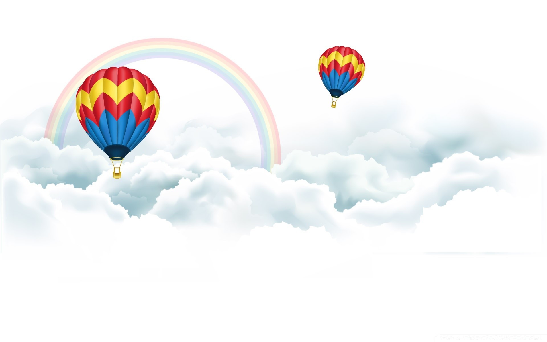 Globos volando en las nubes con un arco iris