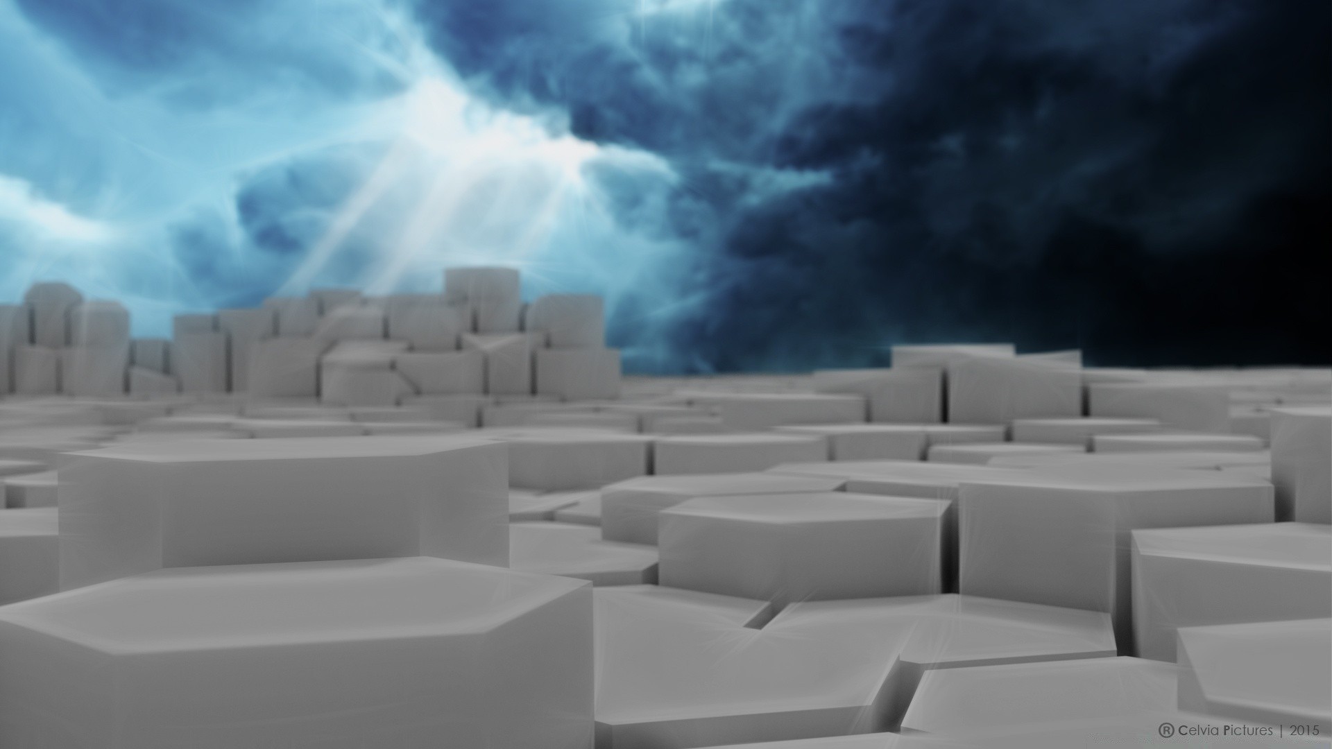 Rayos a través de las nubes rayos del cielo. Piedras grises. Diseño
